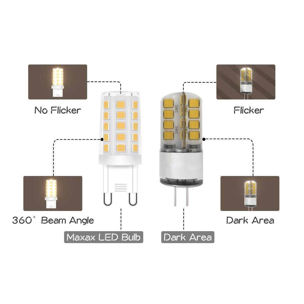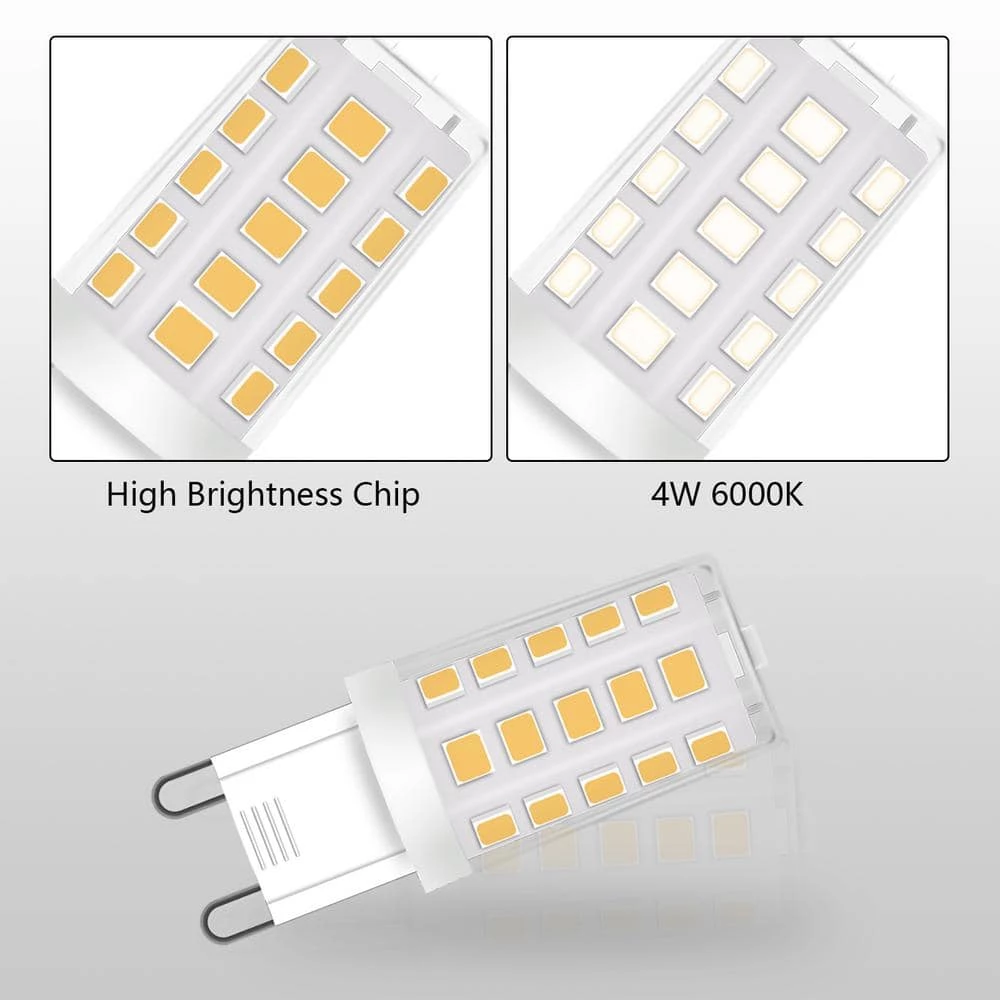 G9 LED bulbs will reduce your energy costs while still providing the best lighting for all your applications. G9 bulbs can be used in a variety of lighting equipment, including ceiling fans, under-cabinet lamps, wall lamps, table lamps and floor lamps, chandeliers, accent lighting, etc. The sturdy ceramic base structure allows you to use it safely and securely.