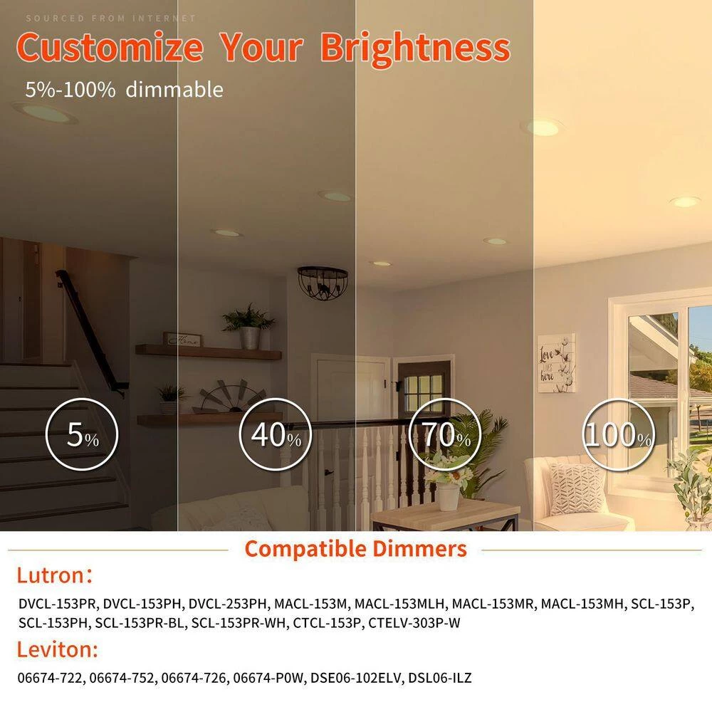 - Wide application: 5% to 10% smooth dimming, compatible with most dimmers, this slim LED downlight is perfect for the kitchen, living room, bedroom, bathroom, hallways, doorways, workplace, outside soffits, etc.