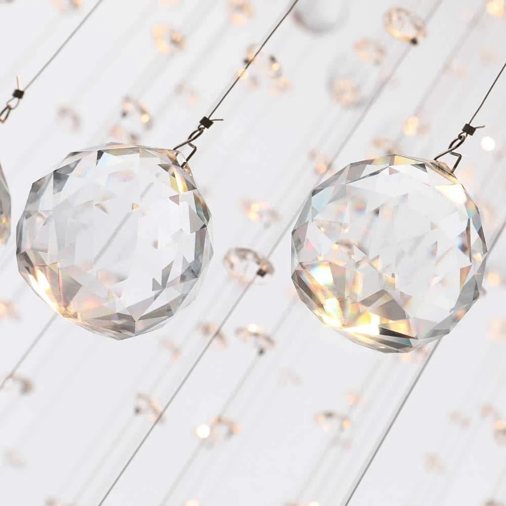This fixture features 6 lights with sparkling spiral 100% crystal balls that give beautiful rainbow lights everywhere in the room. Attaching string and drops are very easy. Greet guests with a warm and welcoming glow while you also grab their glances with this eye-catching chandelier, sure to be the star of any entryway ensemble. Bring a boost of brightness and a bit of bling to any room in your home.