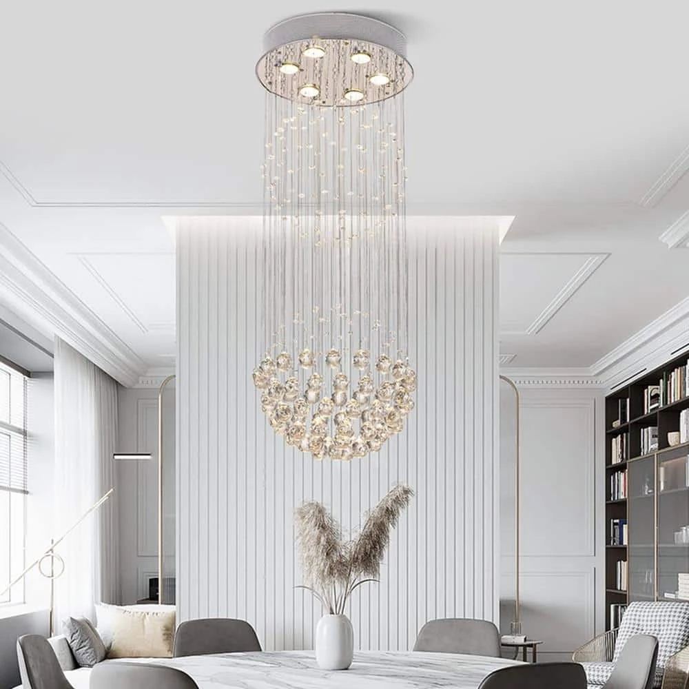 - Attractive design: 1 hundred percent of the elegant crystal, this chandelier will add elegance and ambiance to your stairwell entryway passageway foyer and house with high ceilings