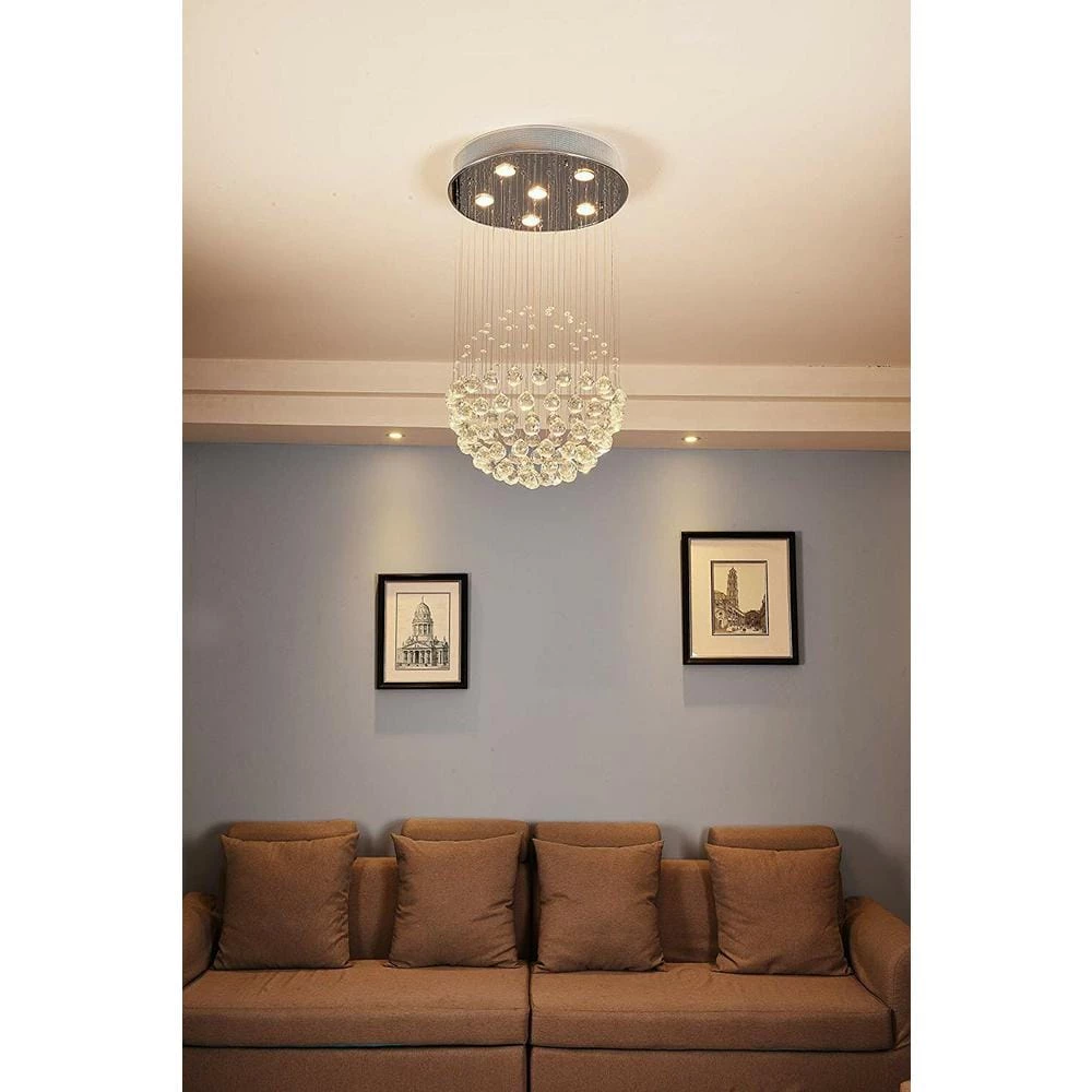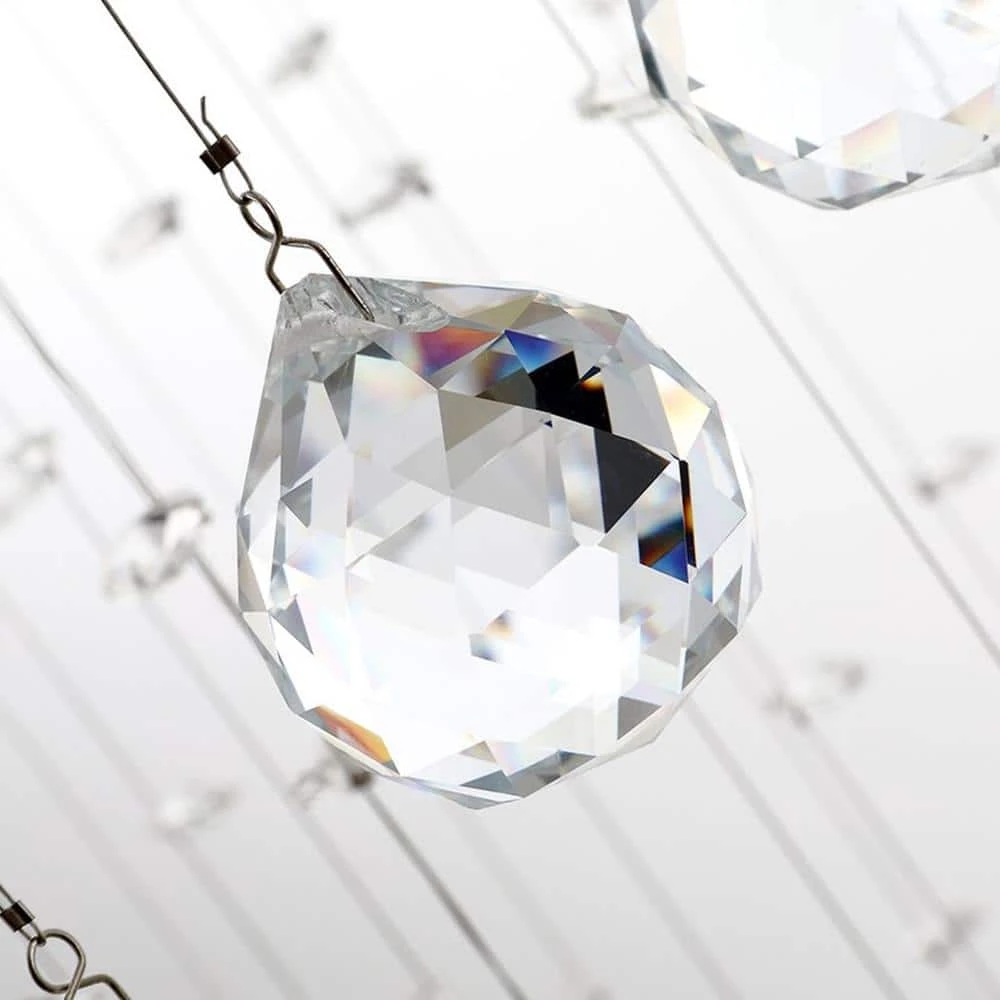 This chandelier gives beautiful rainbow lights everywhere in the room. Attaching string and drops are very easy. Thick metal frame, globe ceiling crystal lighting, strong light transmission; combining classic and modern elements, eye-catching.