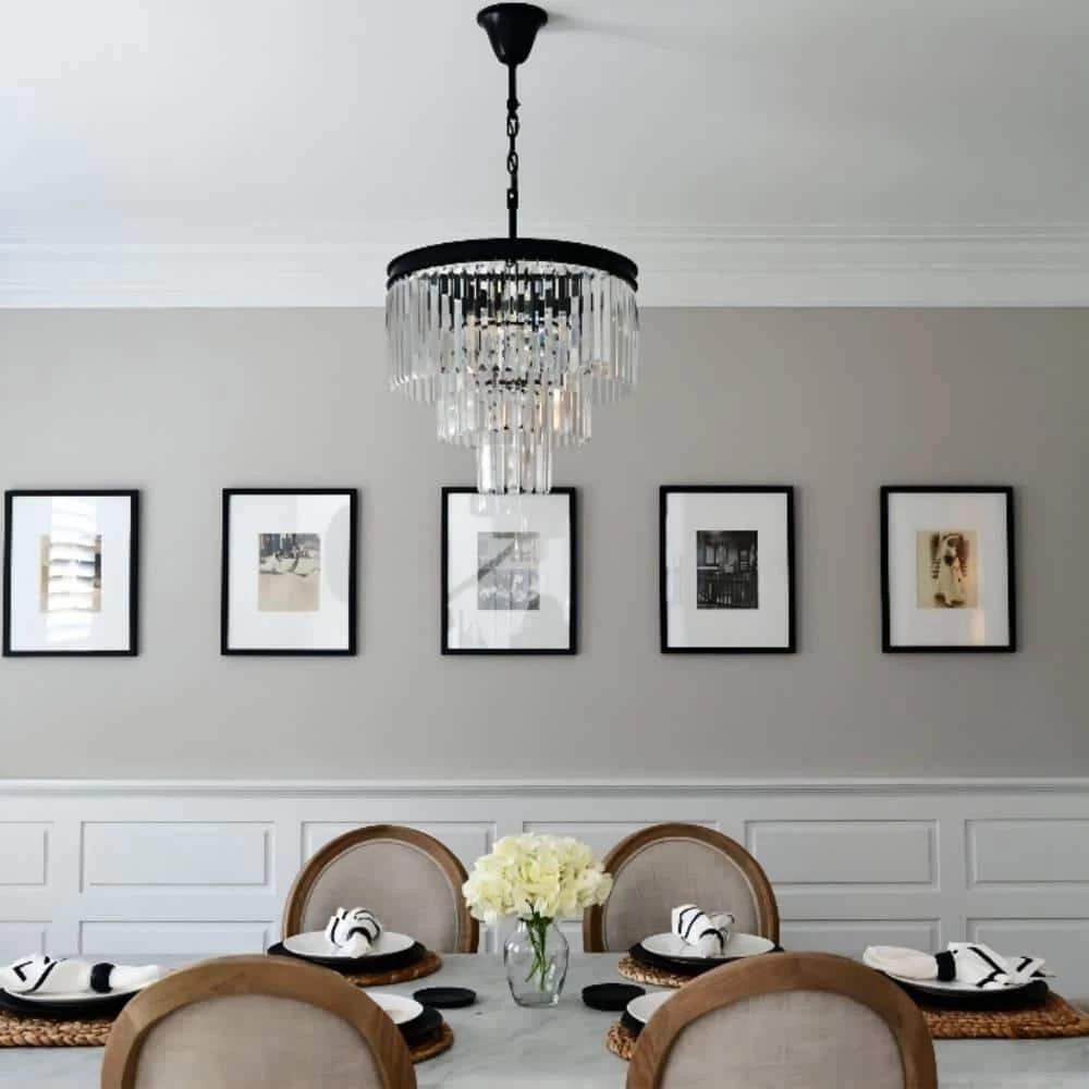 - Modern crystal chandelier: solid black metal frame, top cut crystal strip, elegance is decoration and attitude to life