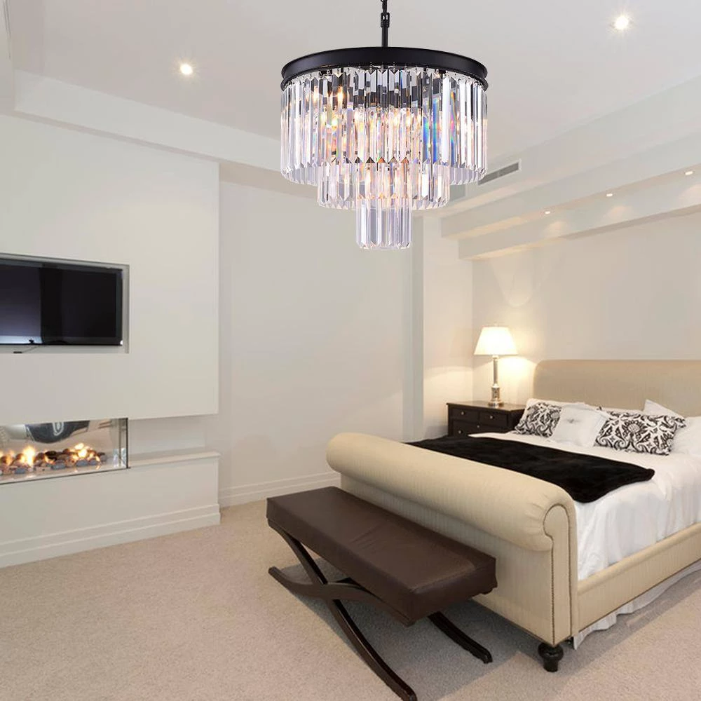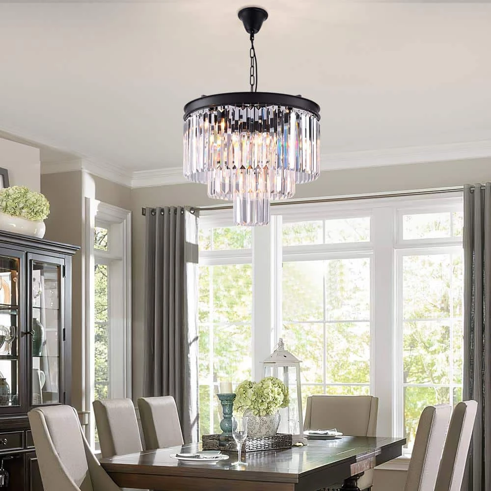 Illuminate your home with this stunning crystal chandelier. The 3-tier rainbow sparkling crystals drip off of the flush-mount, giving your room a glamorous, contemporary look. Install this elegant chandelier and dim the lights for a romantic and relaxing night.