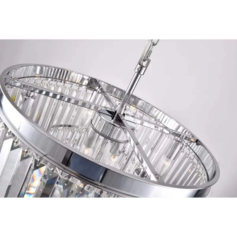 Illuminate your home with this stunning crystal chandelier. The 3-tier rainbow sparkling crystals drip off of the flush-mount, giving your room a glamorous, contemporary look. Install this elegant chandelier and dim the lights for a romantic and relaxing night.