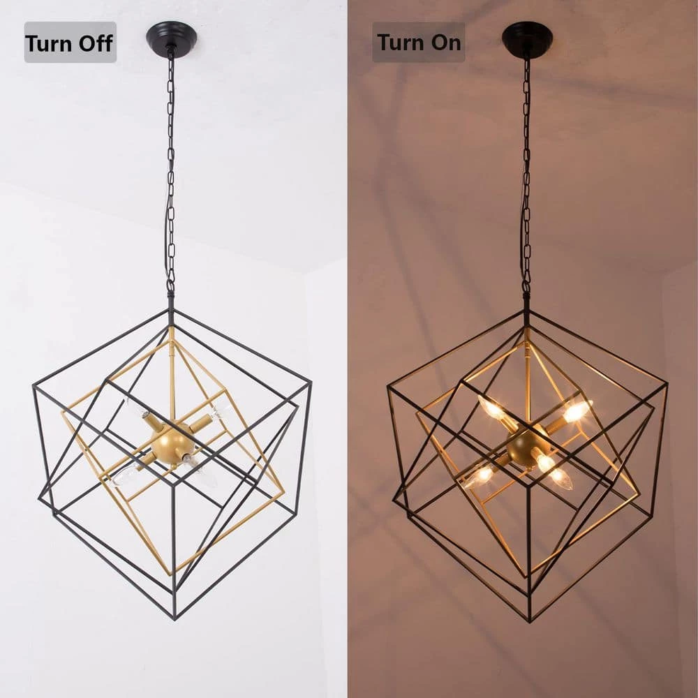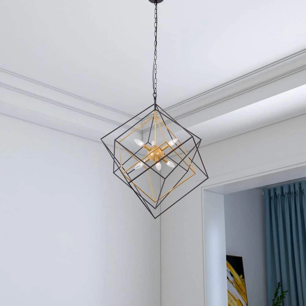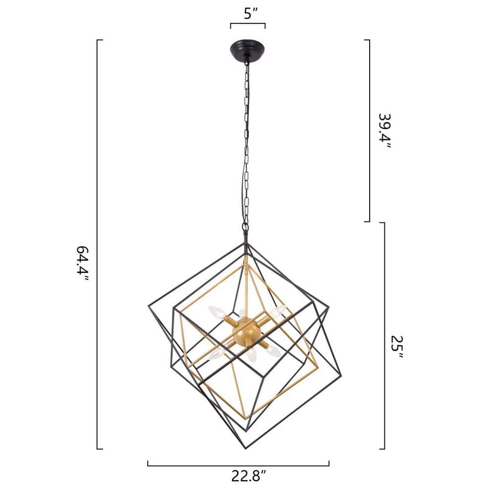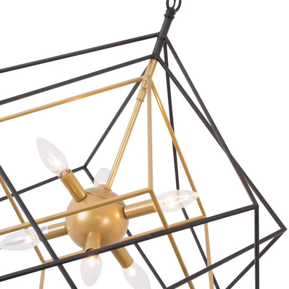 This contemporary Chandelier in Black/Gold finish with eye-catching, contemporary design works well with many different color schemes. Its unique construction highlights its stunning look without compromising quality and function. Featuring an adjustable length hanging chain you can use it in rooms of varying ceiling heights.