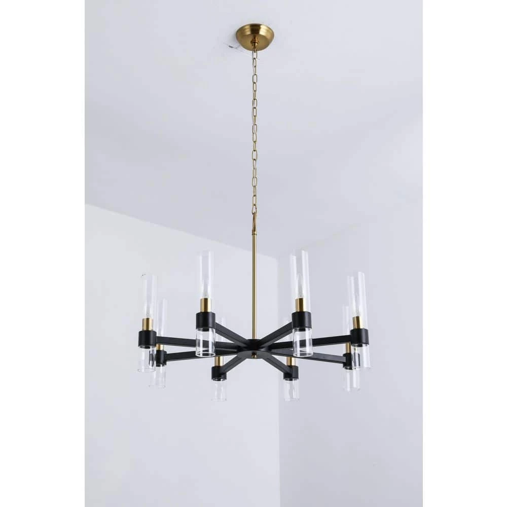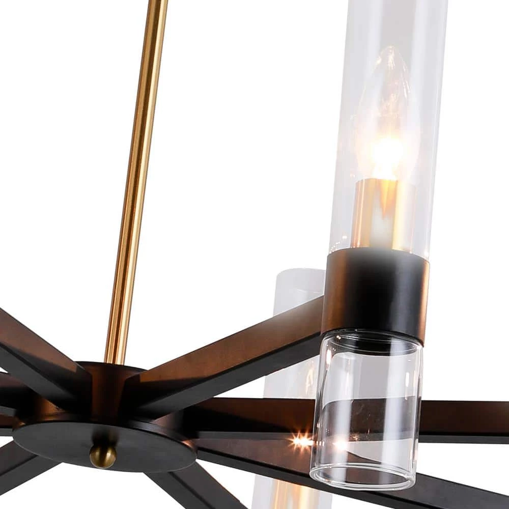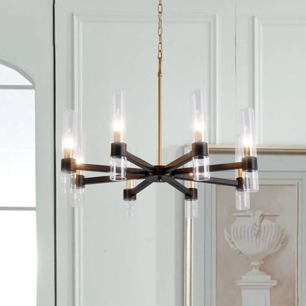 This 8-light chandelier is the perfect combination of candle style and modern color. It is made of metal, resistant to high temperatures and corrosion. Timeless in a classic finish in black and gold. The bulbs in the E12 base (note that the bulbs are not included) emit a soft warm light that penetrates the clear glass shade, making you and your family look forward to coming home every day. Humanized adjustable hanging chain, suitable for both high and low floors. It is perfect for living room, dining room, farmhouse, dining room, entrance, hallway, workshop, foyer, etc.
