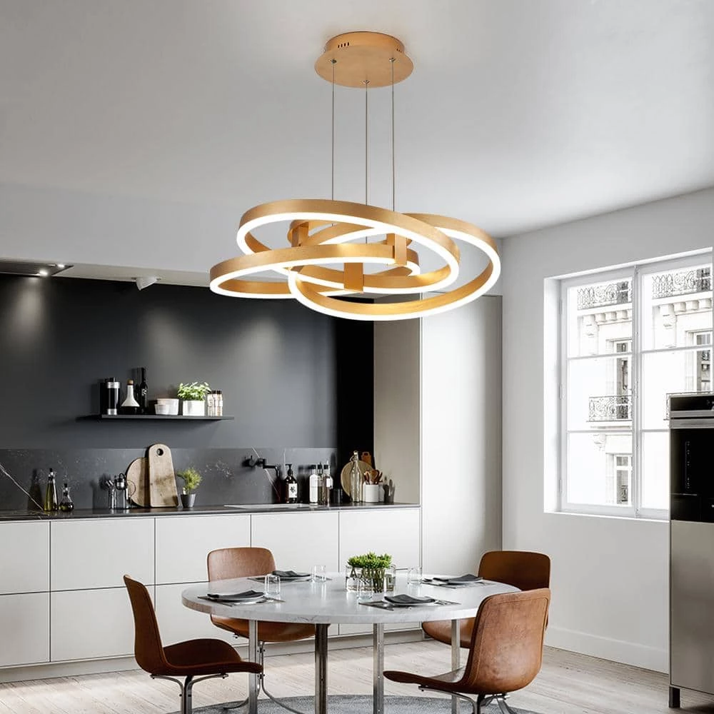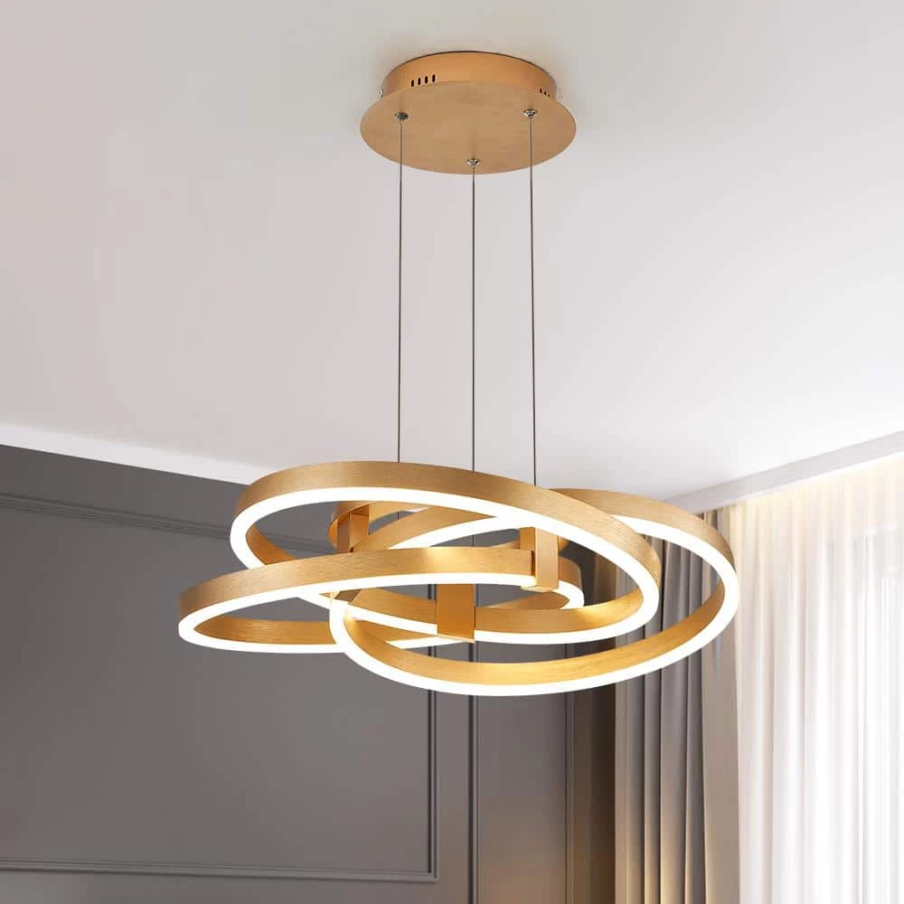 - Attractive design: gold finish, material: acrylic for this chandelier light fixture you just need few-minutes to hang on the ceiling top, modern chandelier with installation instructions and free parts in the-package, add a modern and sense of creativity to your home, this simple, stylish brush gold LED chandelier create a single illuminated-piece for an stunning look