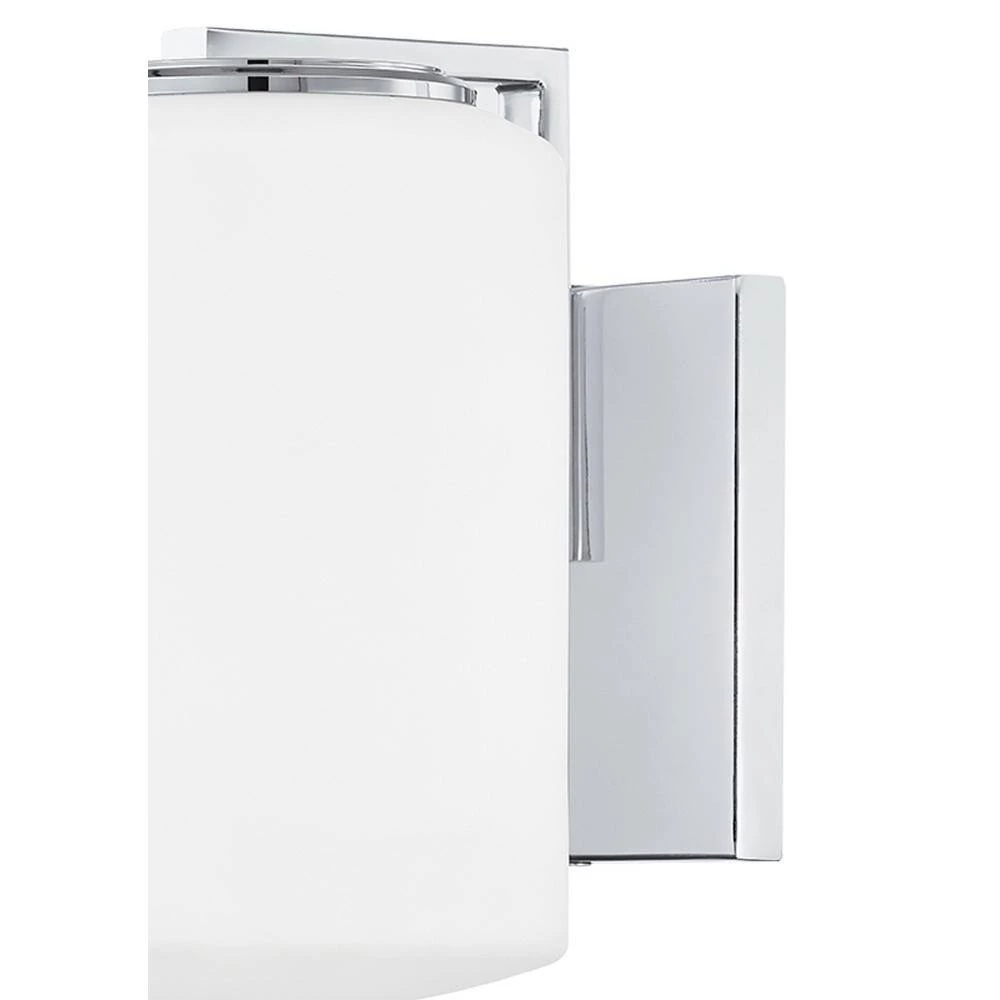 With shades large enough to nearly hide the backplate, these bath and vanity fixtures appear to hang in midair. Bulbs enclosed inside the opal matte cylindrical shades give off a soft glow. Polished chrome accents at the shade top, arm and backplate give the fixture a clean look.
