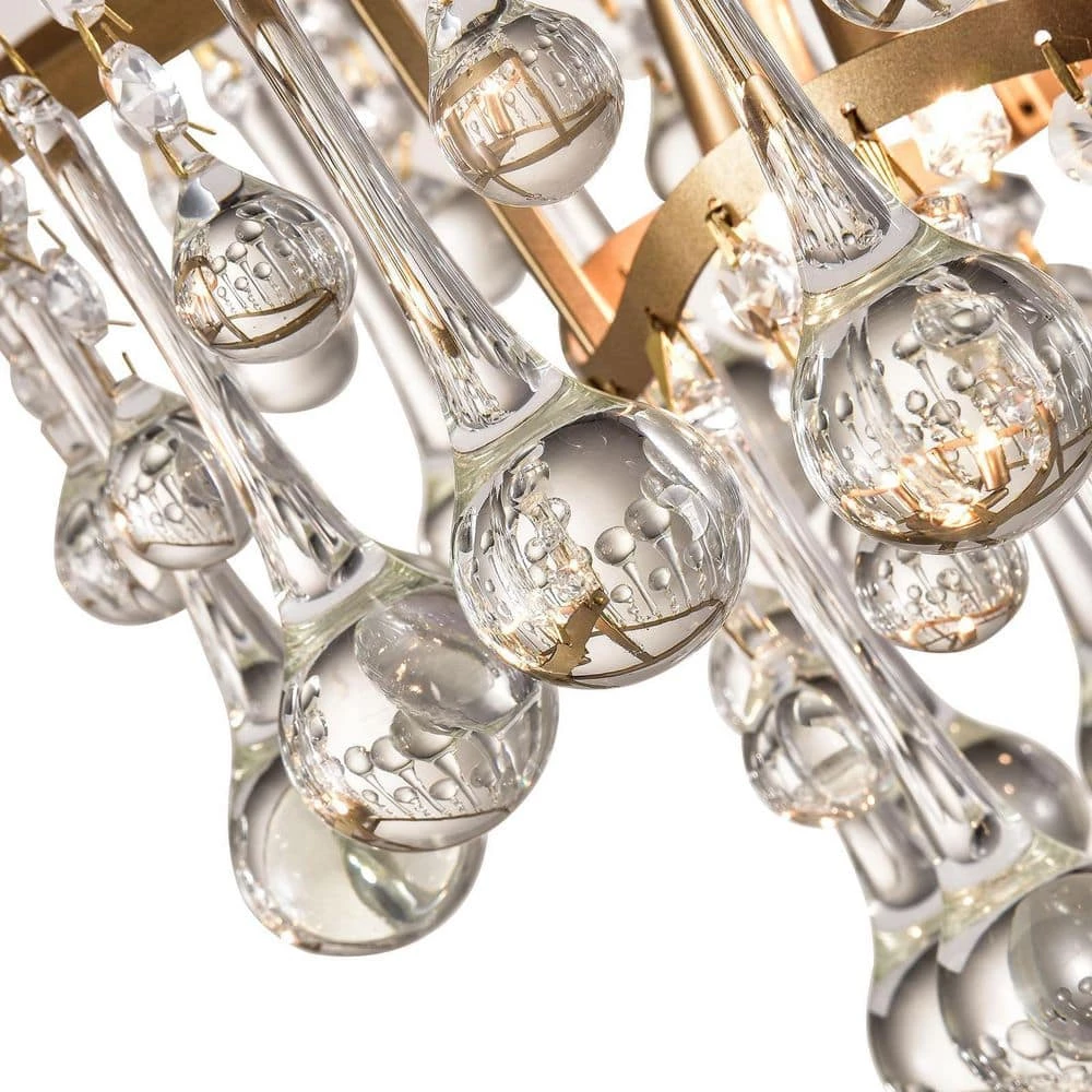 - Attractive design: this crystal chandelier has a streamlined shape and is made of classic golden metal, there is a crystal pendant below it, which is fashionable and luxurious