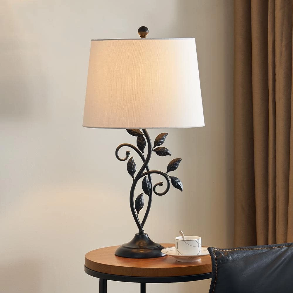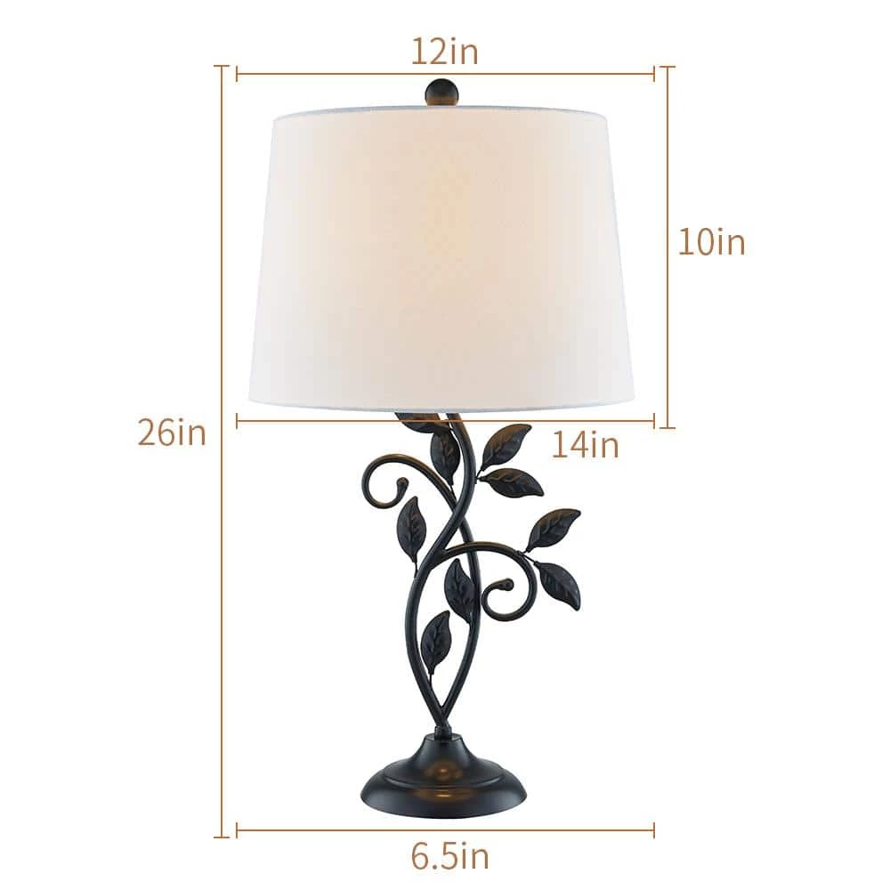 The traditional table lamps set of 2 are consisted of high-quality metal material and oatmeal finish fabric drum shade that are perfectly combined with the warm tone of the lamp’s illuminated, creating a comfortable environment to read, to work, to rest,without hurting your eyes.The unique leaf shape will not make the lamp very boring. And high-quality materials can be used for a long time.