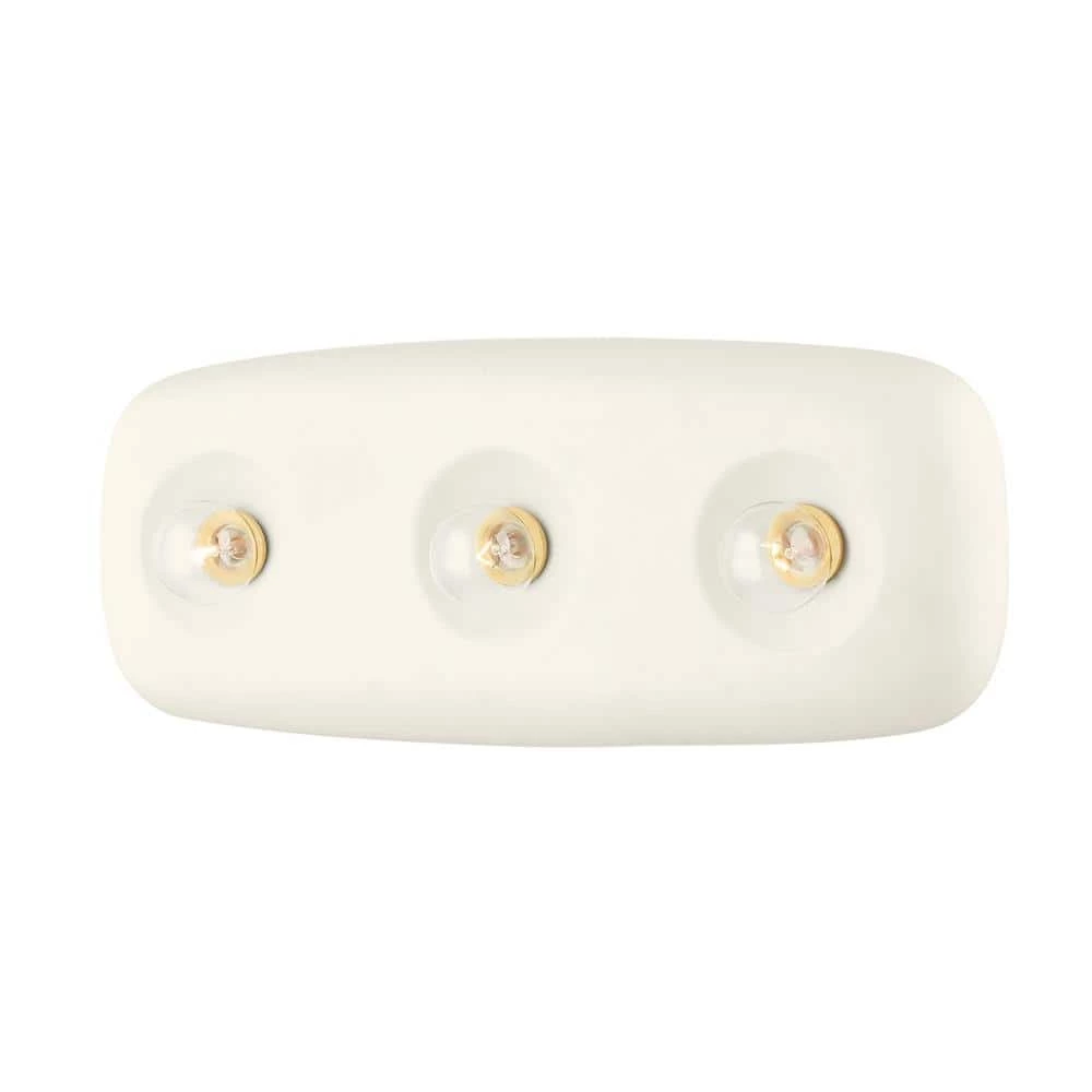 Endlessly cool, Colleen is a new kind of wall light. Crafted from ceramic, Colleen features rounded edges and a soft white finish. Exposed bulbs and a touch of brass lend some edge, making Colleen a cult classic in the making. Available with 1-light or 3, she’s sure to brighten any room in the house. In a bath setting, line up 3 single wall sconces flanking 2 mirrors for a clean and fresh look.