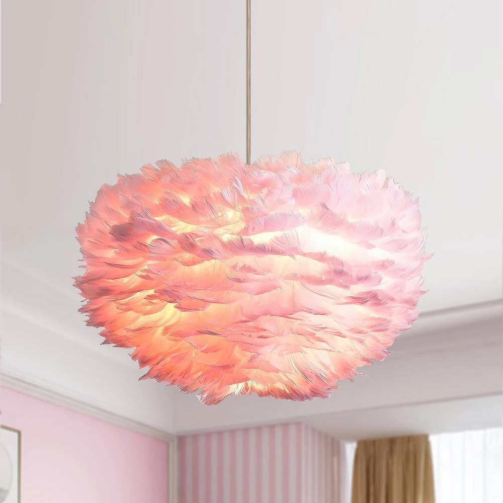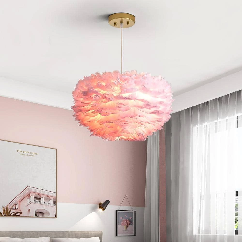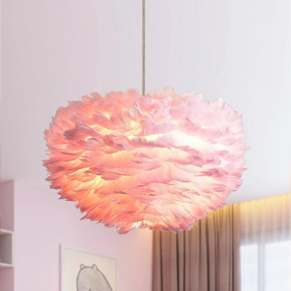 Crafted in chic feathers and metal, this stunning chandelier offers luxury and comfort in your bedroom. Hand-woven multi-layer feathers, not easy to fall off, rich in layers. The so ft. feathers are full of warmth, making the lamps more spiritual. It is the finishing touch of modern household items. Dust can be easily removed with a hair dryer and feather duster, we recommend 8-Watt to 12-Watt LED bulbs or incandescent bulbs under 60-Watt. (bulb sold separately).