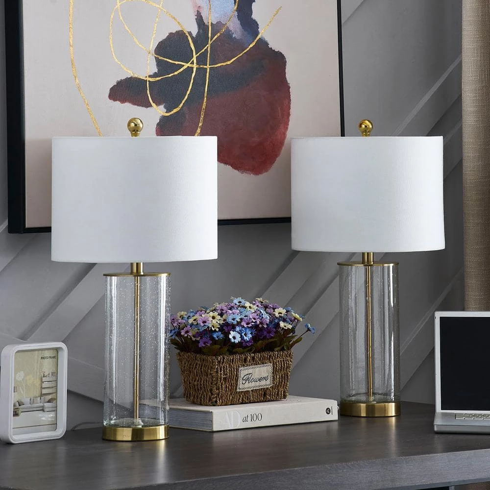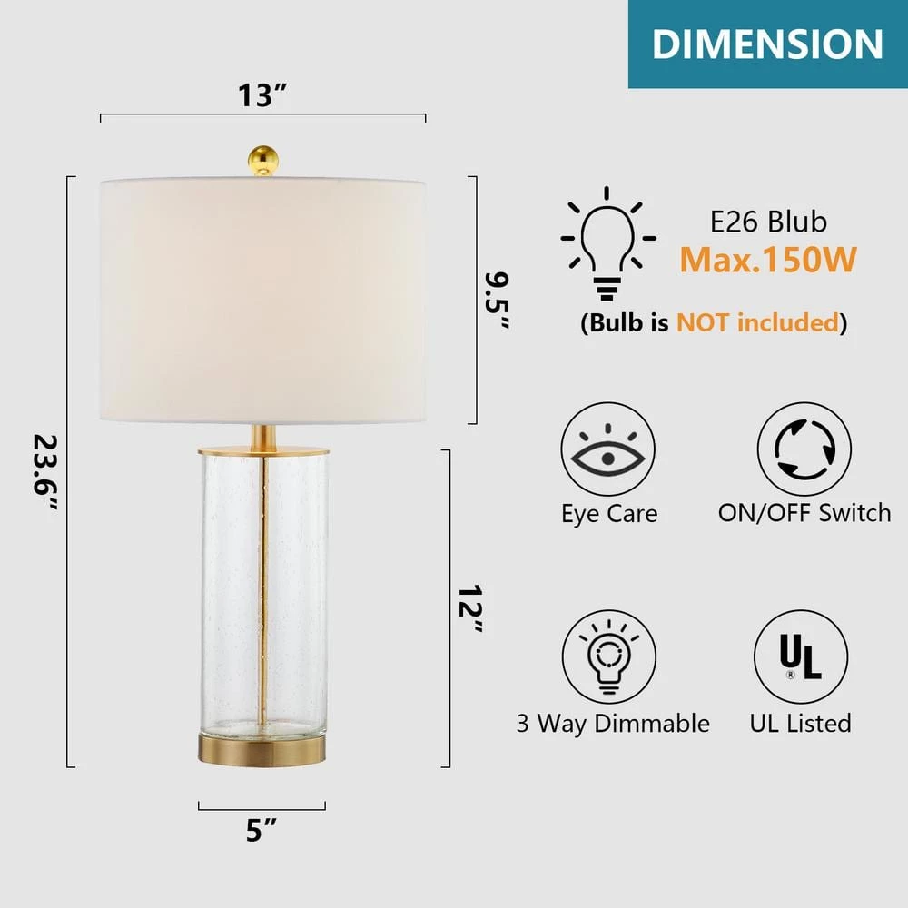 When you first see this table lamp, you will think that it has a simple design, but the facts are completely different. The seemingly simple design shows its uniqueness on the lamp body. When manufacturing the glass lamp body, the artist personally adjusts the intensity and size and blows in different ways, making each lamp body different and unique. Crafted from clear bubble glass plus painted finish, this set of 2 table lamps is perfect for adding an eye-catching accent to any room in need of an upgrade. The shiny bubble glass lamp body below exudes charming charm, while an understated oatmeal cotton drum shade up above balances out the look, this unique piece is sure to inspire a million compliments no matter where it sits.
