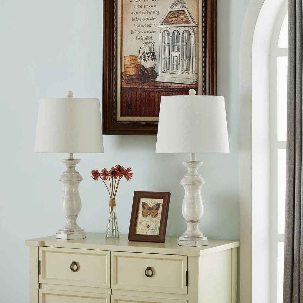 This lamp has a classic look that updates and lights your living room. It has a curving and molded resin base with a purposefully worn finish that reminds us of vintage finds at the flea market. The contrasting shade is made of 100% linen and features a cornered empire shape that complements the molding on the lamp. We love that this table lamp features a 3-way switch and is LED compatible: Make sure to pick up a standard 100-Watt bulb (not included). Best of all, this lamp has a generous 72 in. cord that makes it easy to style in your hallway or home office.