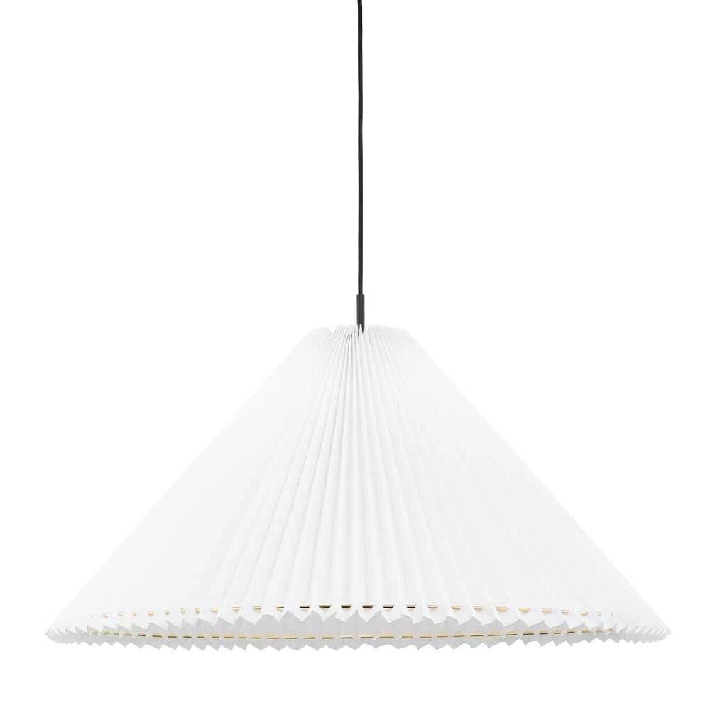 Dubbed the comeback queen, Demi brings pleats into the modern age, coupling the traditional motif with minimalist metalwork. The Demi collection is stacked, available as a wall sconce, pendant, linear light, table lamp, and floor lamp. Throughout the family, 1 detail that shines is the metal ring at the edges of the shade. Structural in nature, it becomes a decorative accent, finished in aged brass or soft black.