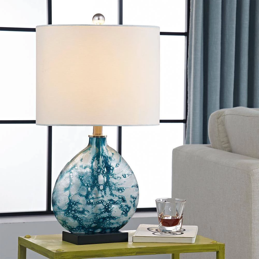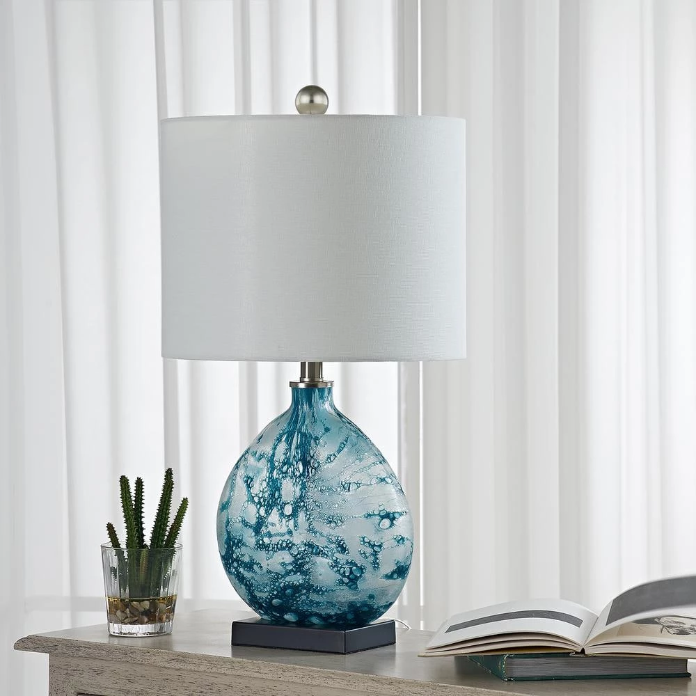 - Minimalist design this table lamp has an advanced manufacturing process, when manufacturing the glass lamp body, the artist personally adjusts the color and blows it in different ways, making each lamp body different and unique with white linen lampshade, an artistic soft beauty is perfectly captured in this beautiful table lamp that complements any room with style and elegance