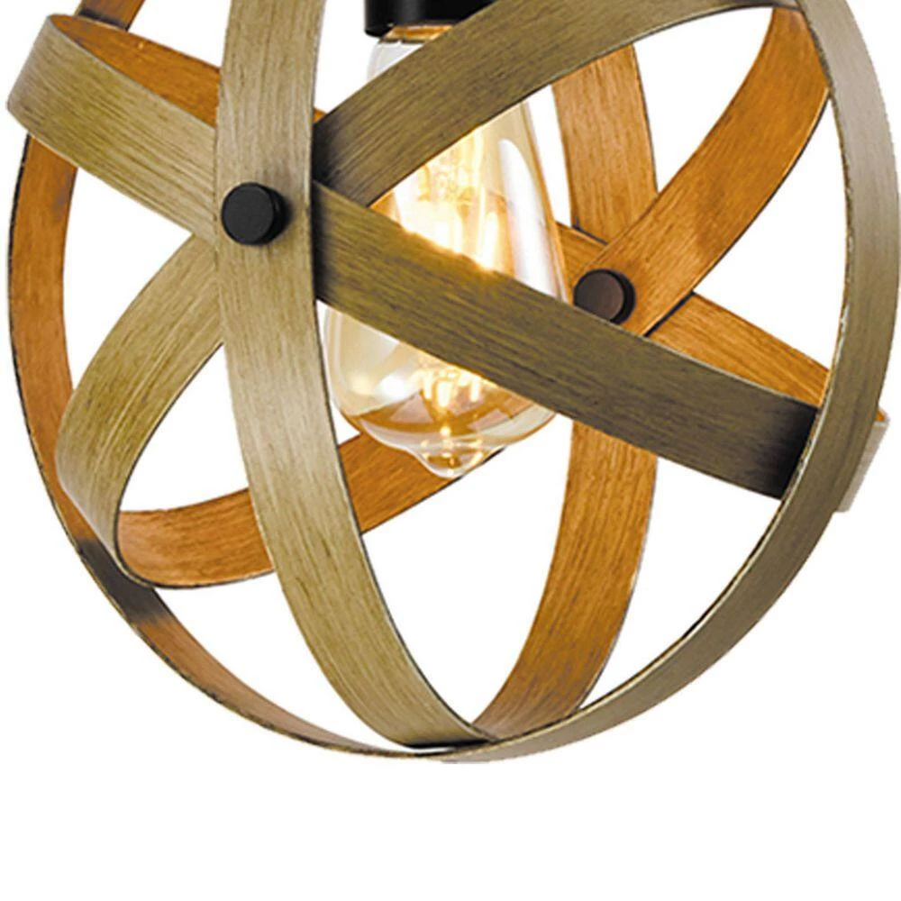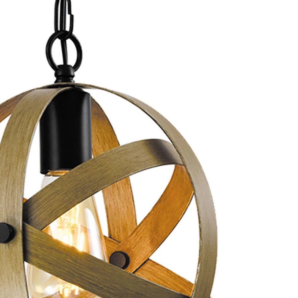 Bring a unique touch to your living room, entryway, or kitchen with this statement pendant light. Made from wrought iron, it features an open globe shade crafted from thick circular bands wrapped around each other. Up top, it hangs from a sloped ceiling-compatible canopy and a length of chain for a height-adjustable downrod. Best of all, it’s compatible with dimmer switches, so it’s easy to set just the right mood wherever you add it. This fixture accommodates a single standard bulb (sold separately).