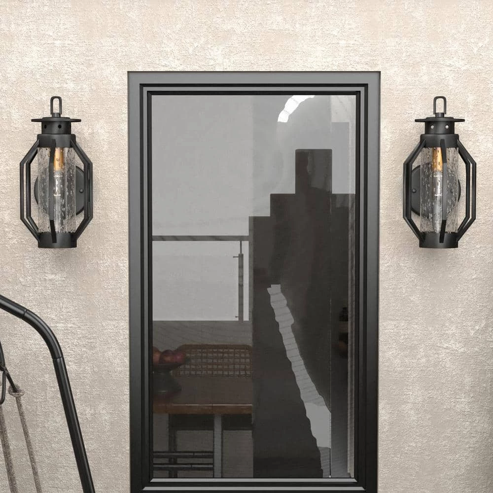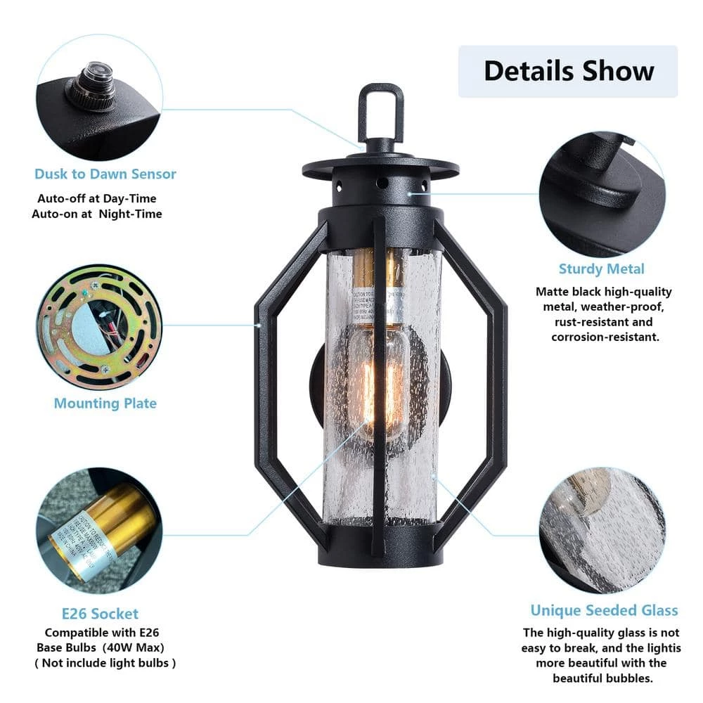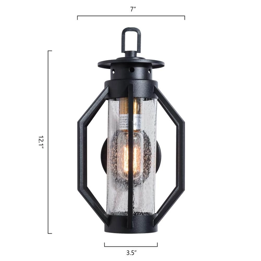 Elegant black finish combined with some iron art and bubble glass lampshade, unique and full of modernity, adds warm light to your door. Any very suitable for outdoor environments – complete weather resistance, by strong metal to withstand the various elements. Bubble glass plate shows the bulb of your choice, you can create a beautiful light outside your home.