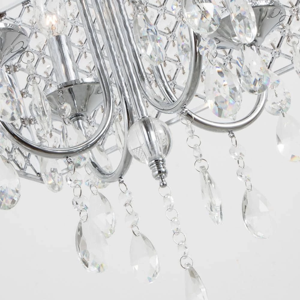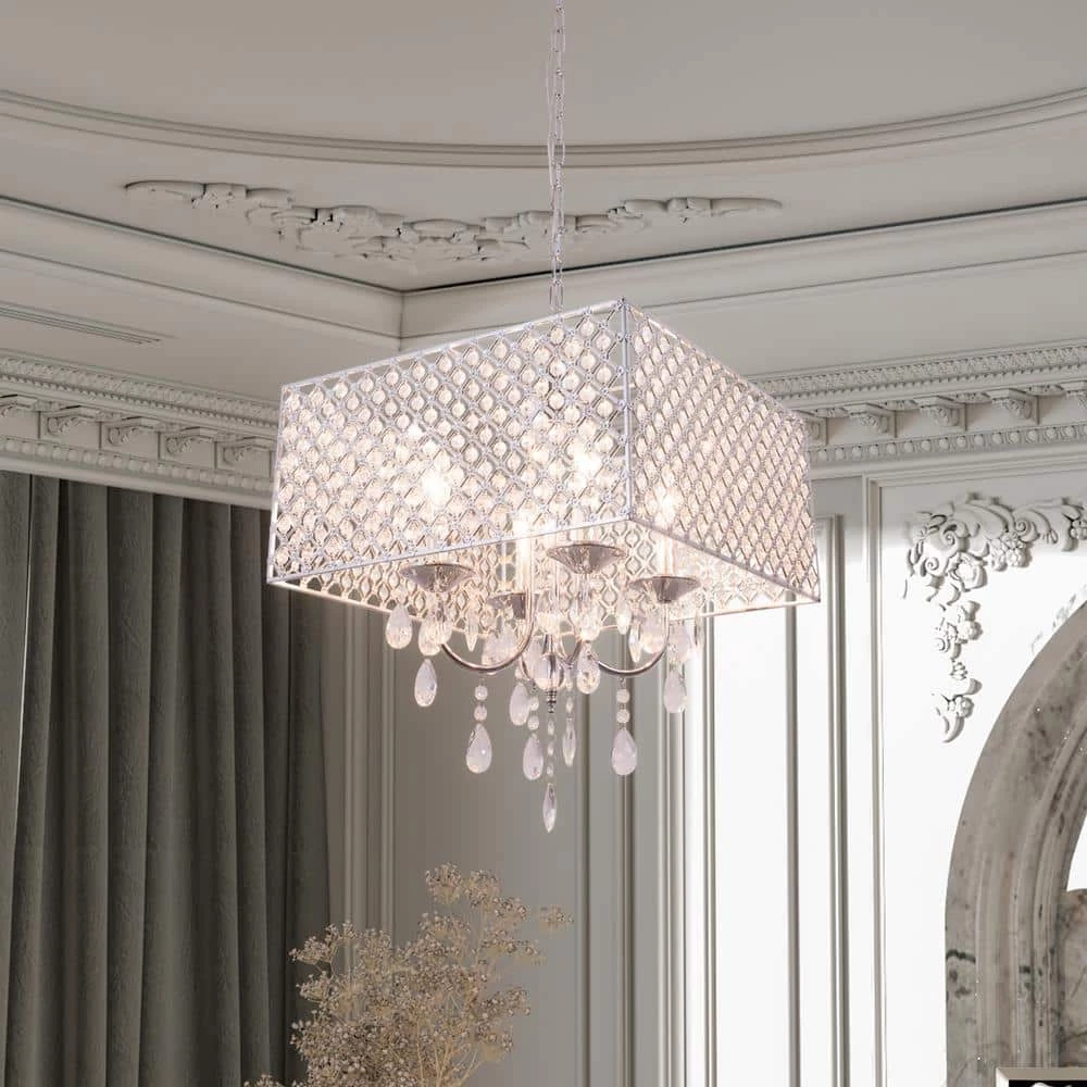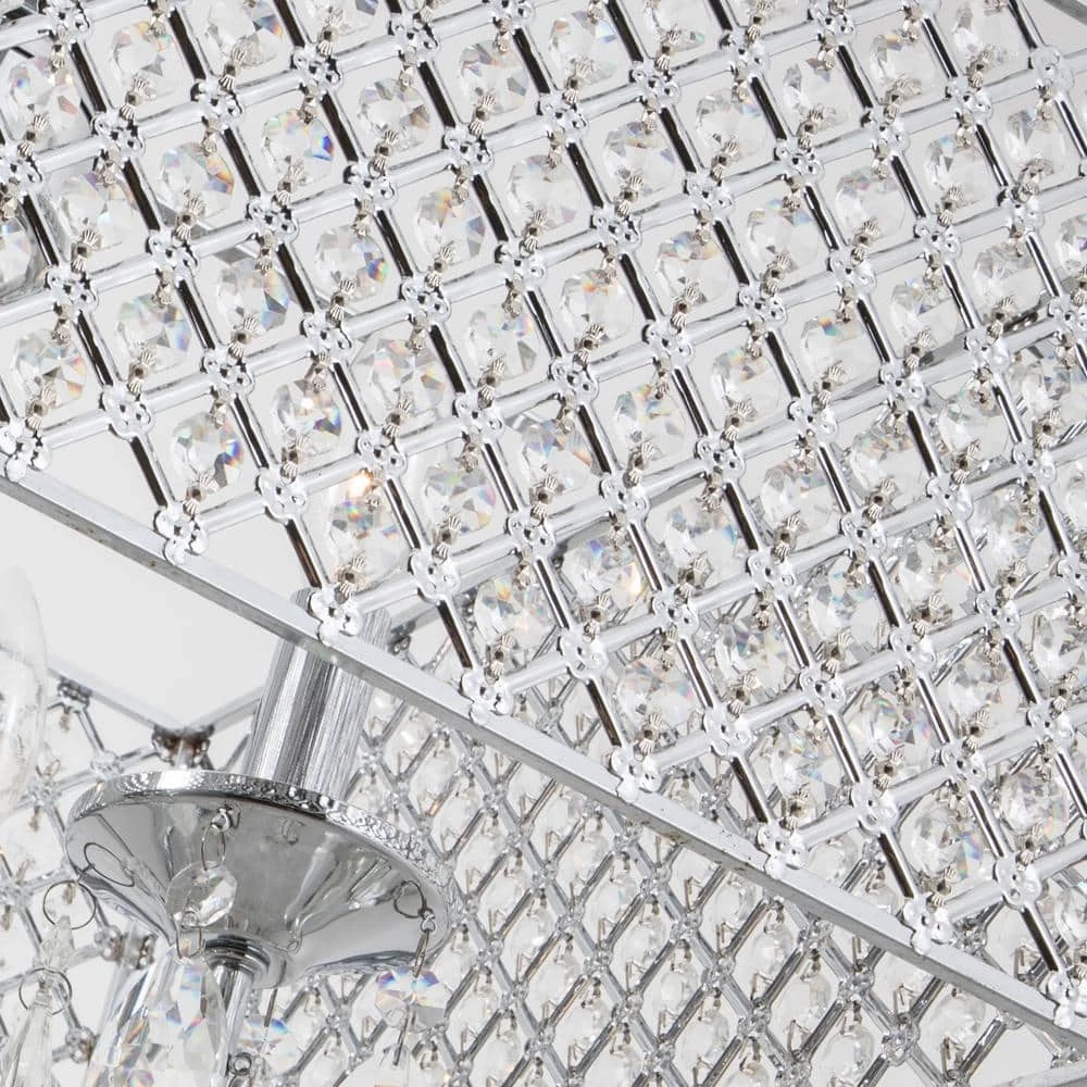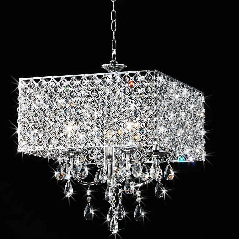 Featuring hard iron in a crystal lattice drum shade. This chandelier has clear crystals that gracefully refract light from the 5 candelabra bulbs for enchanting beauty. Install a dimmer switch for a warm glow effect and easily change the look and feel of the room.