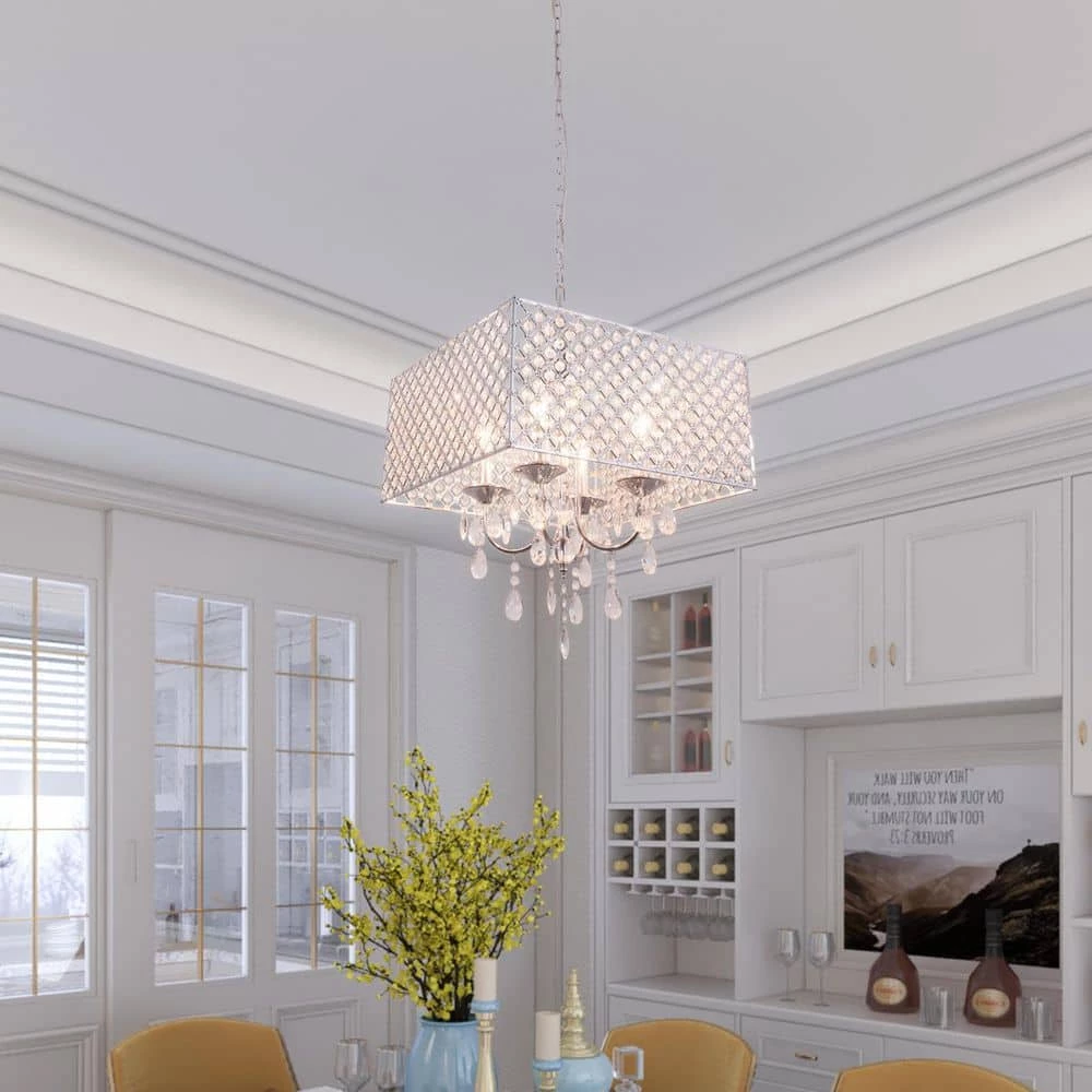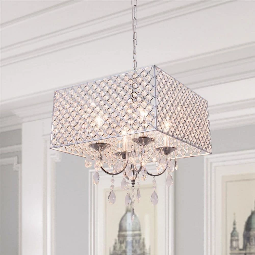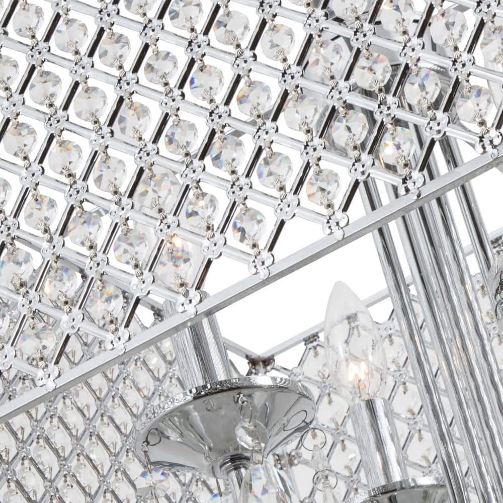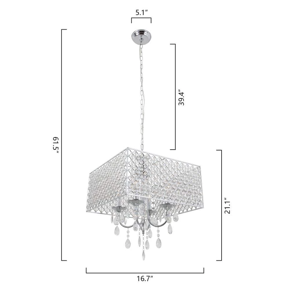 Featuring hard iron in a crystal lattice drum shade. This chandelier has clear crystals that gracefully refract light from the 5 candelabra bulbs for enchanting beauty. Install a dimmer switch for a warm glow effect and easily change the look and feel of the room.