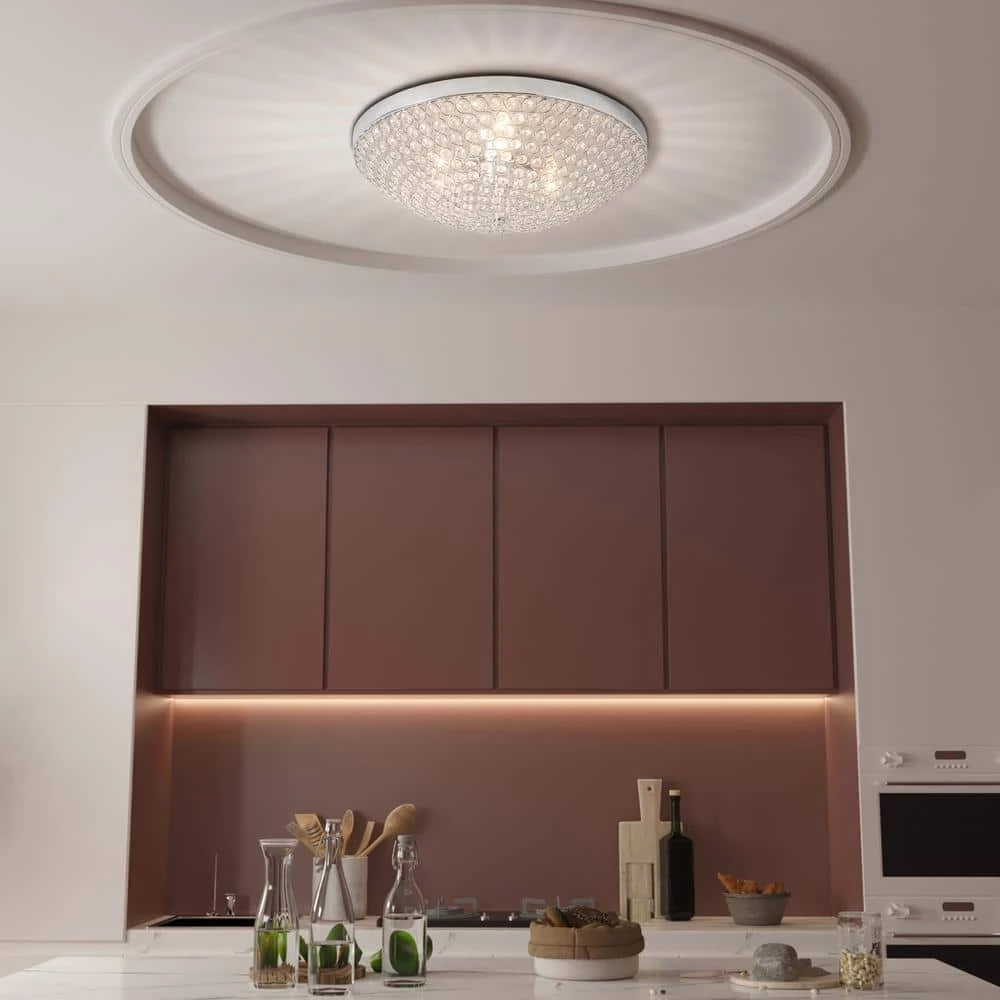 - Chandelier dimension: the size of this crystal chandelier is 4.8 in. H x 17.7 in. D, which will not take up extra-space and is suitable for living room, dining room, bedrooms and halls