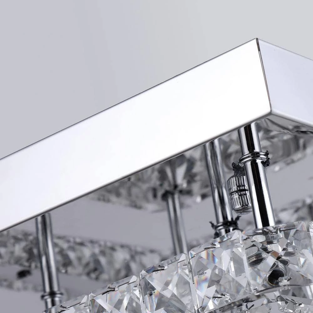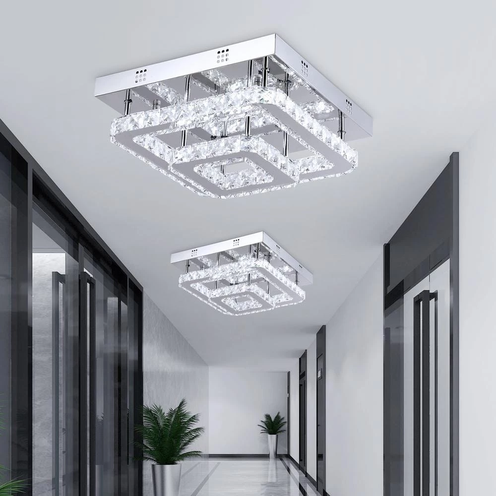 This flush mount ceiling light features a combination of metal in a Chrome finish and a circle of clear and small brick-shaped crystals to create a look. The fixture certainly adds stunning style to a space. The built-in LED chip close to the ceiling lamp can replace the traditional halogen bulb, saving the cost of frequently used light sources and electricity.