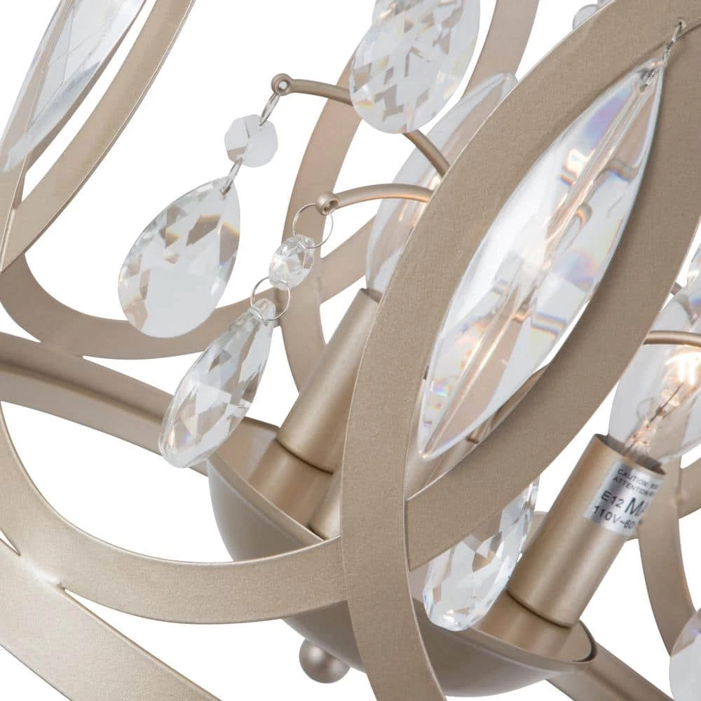Enliven and uplift your room with this effulgent chandelier. Antique bands swirl around stunning crystals and 3 candelabra bulbs for a glimmering and incandescent accent for any space in need of ambient illumination. High-quality crystals, each crystal clear and translucent.