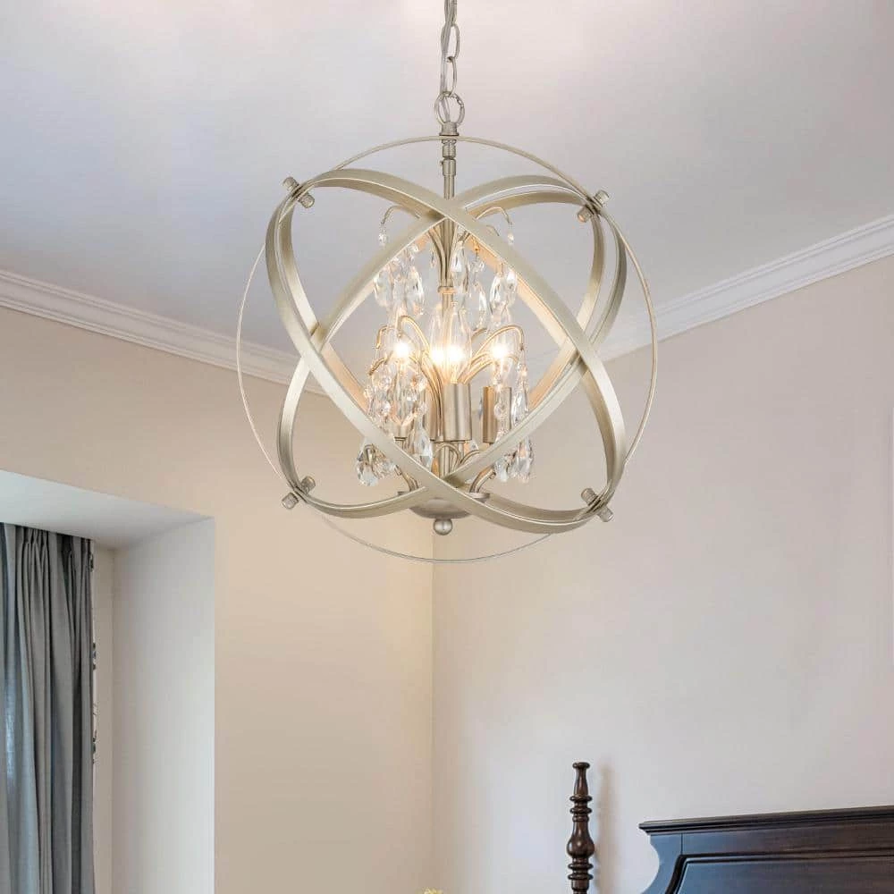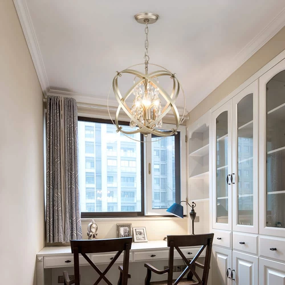 Enliven and uplift your room with this effulgent chandelier. Antique bands swirl around stunning crystals and four candelabra bulbs for a glimmering and incandescent accent for any space in need of ambient illumination. The open structure allows the light to illuminate the room better.