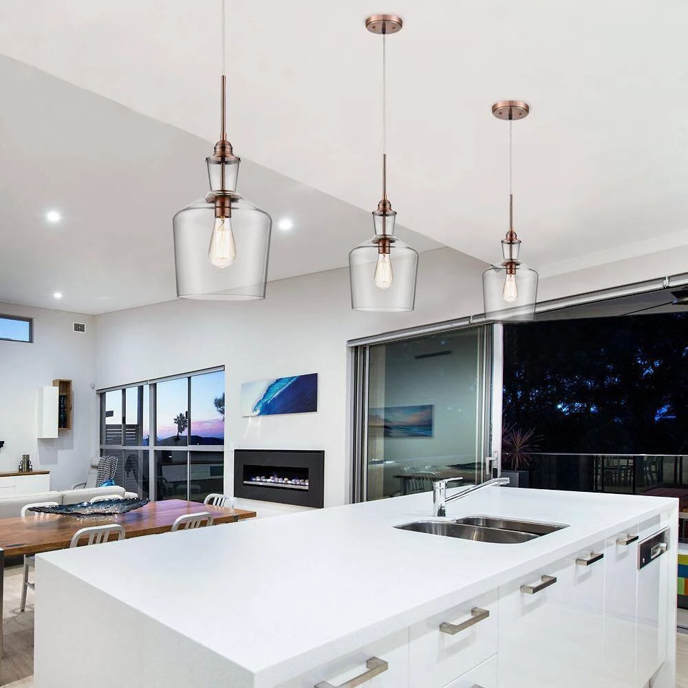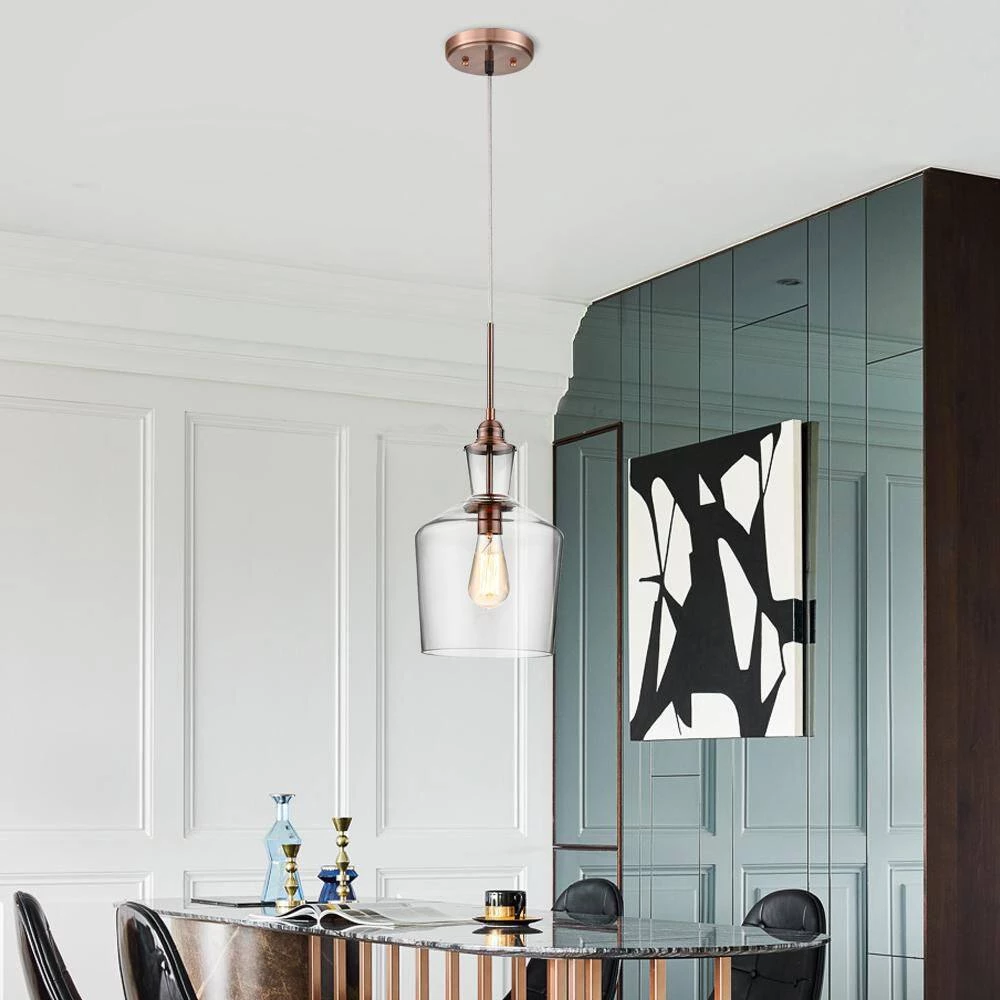 The transparent glass dome facing downwards gives this mini pendant a traditional look. They can be arranged individually or in groups. Very suitable for any area in your home such as kitchen island, dining table, etc.