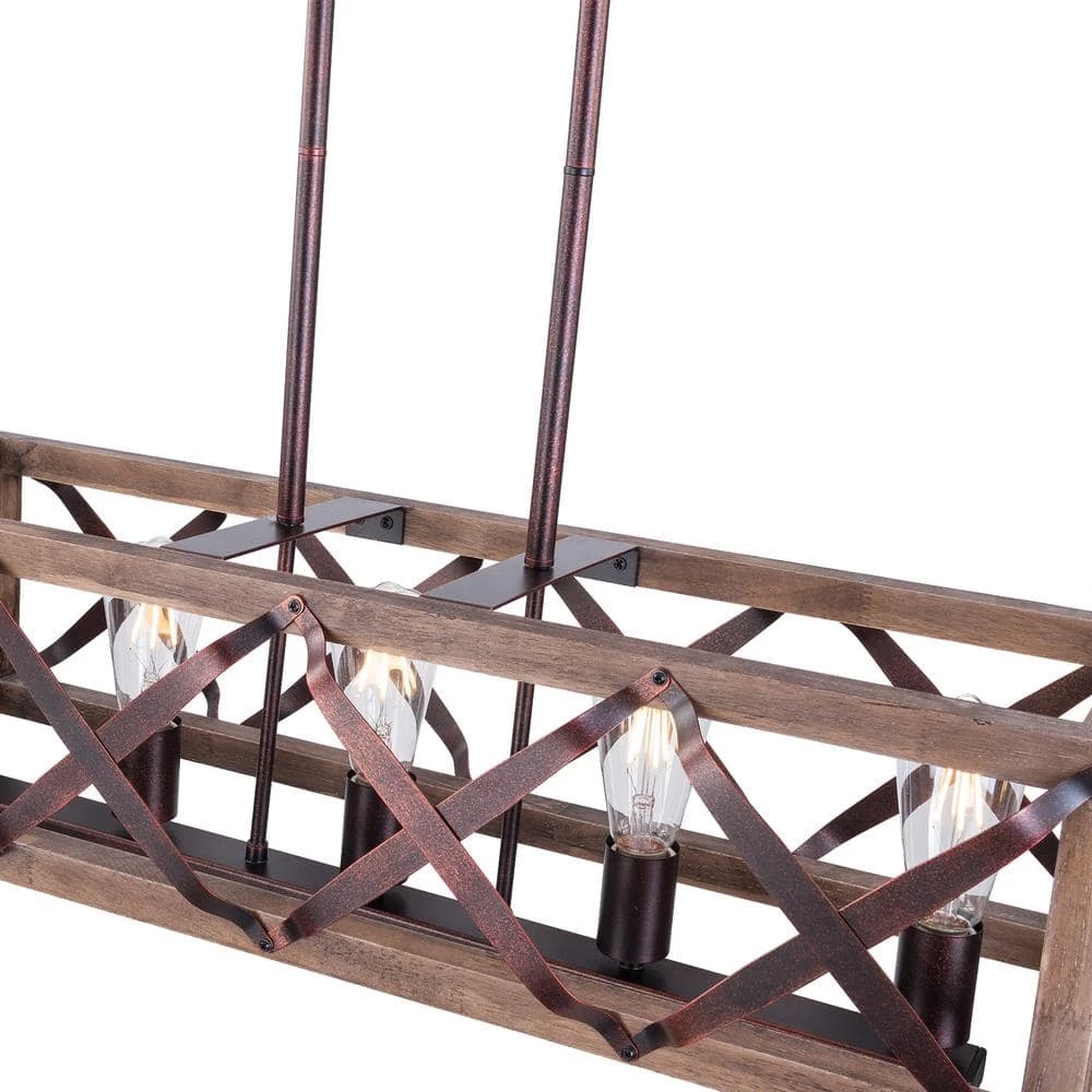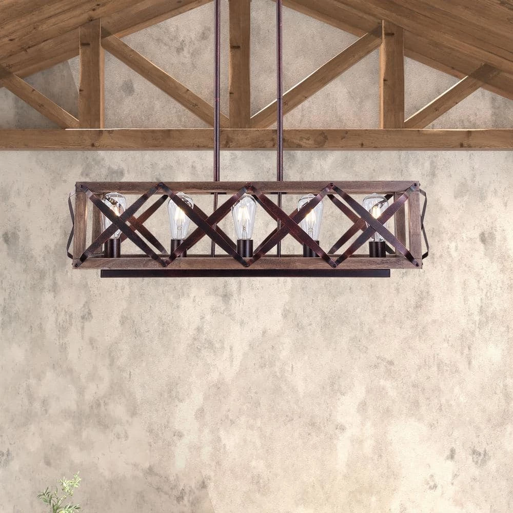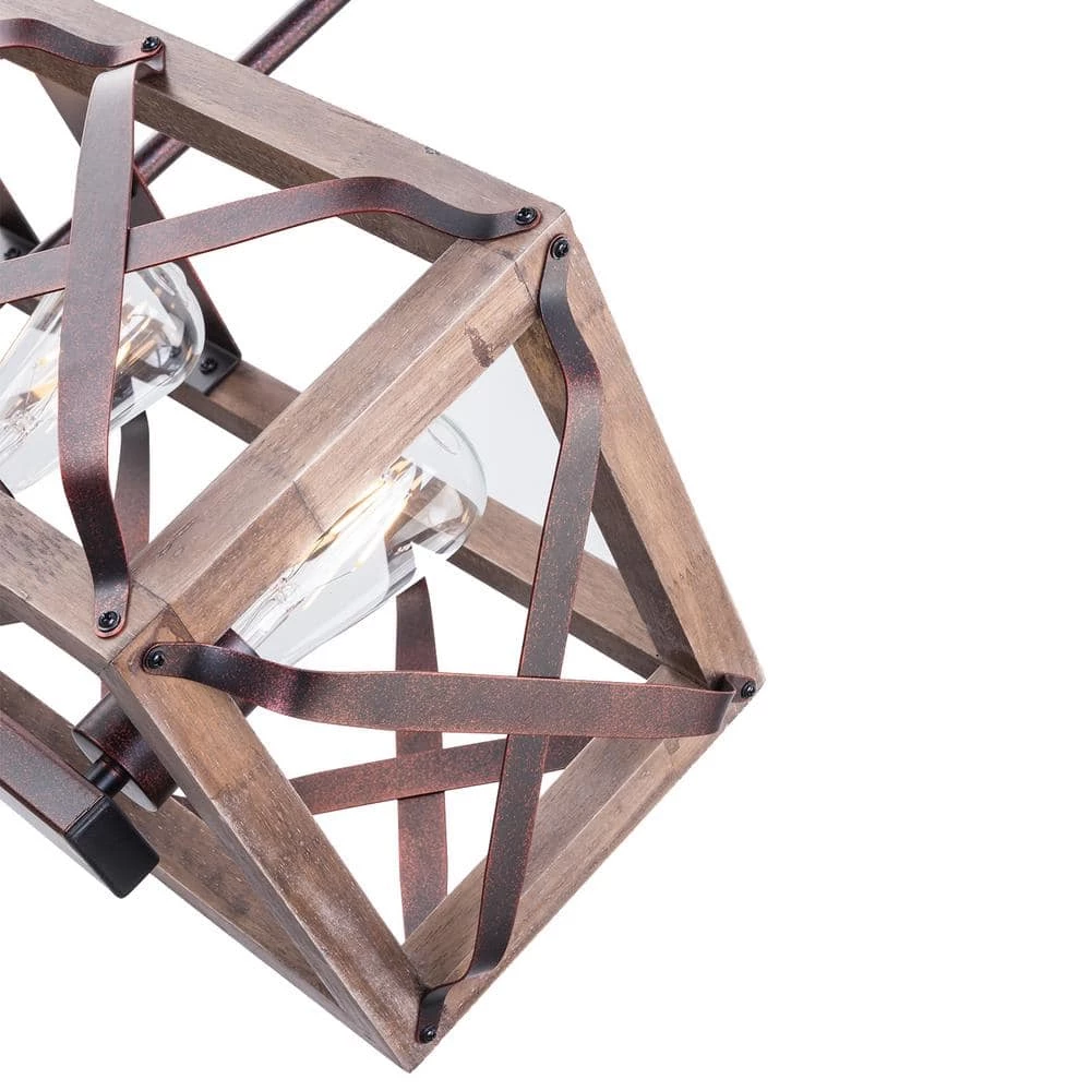 This lantern-tiered chandelier has 5 lights with wood frames, light brown oak, and oil black finish metal. This vintage industrial pendant light fixture is not only rectangle chandelier lighting but also decoration for your house, it can add a touch of vintage retro style wherever you install it. Height adjustable to suit various scenarios.