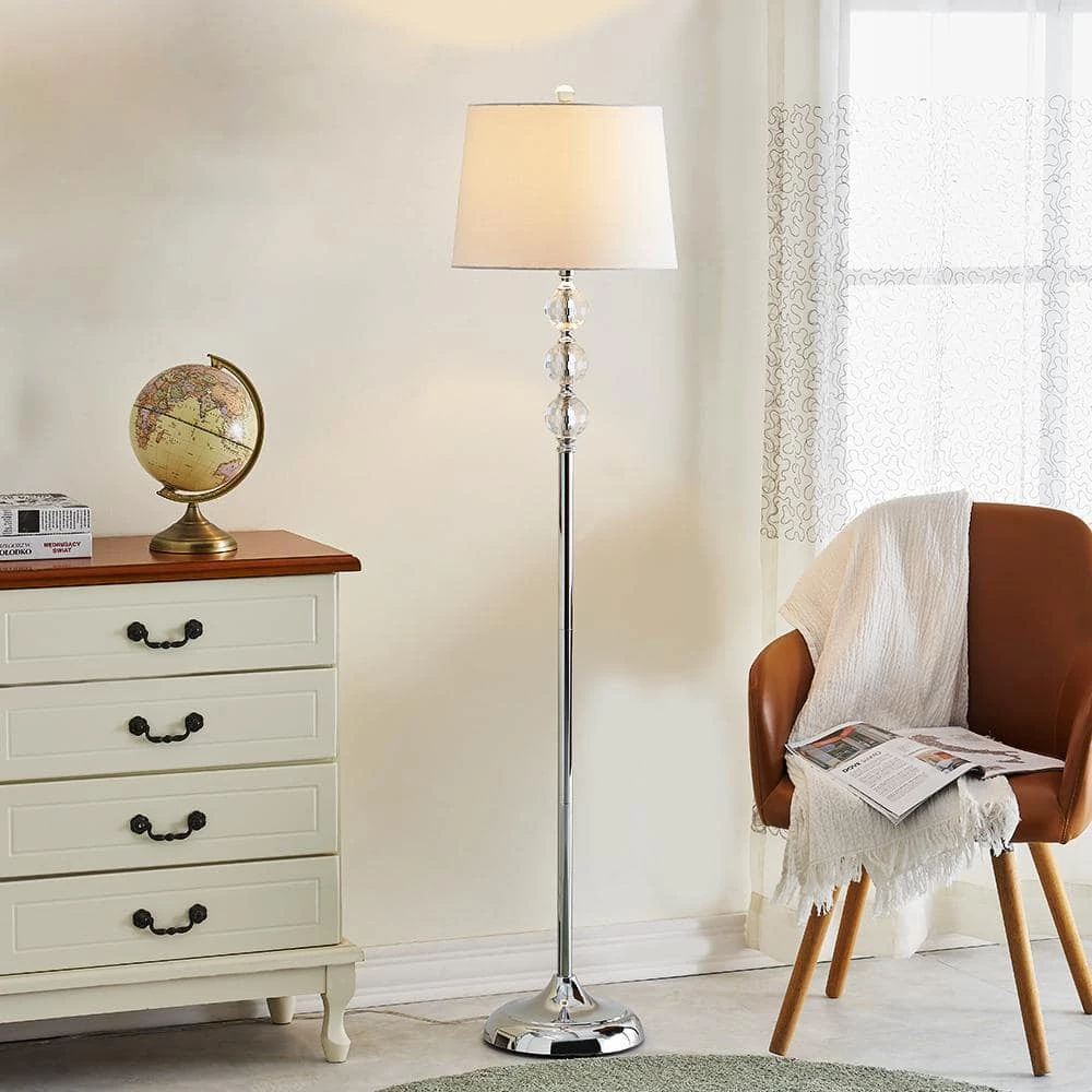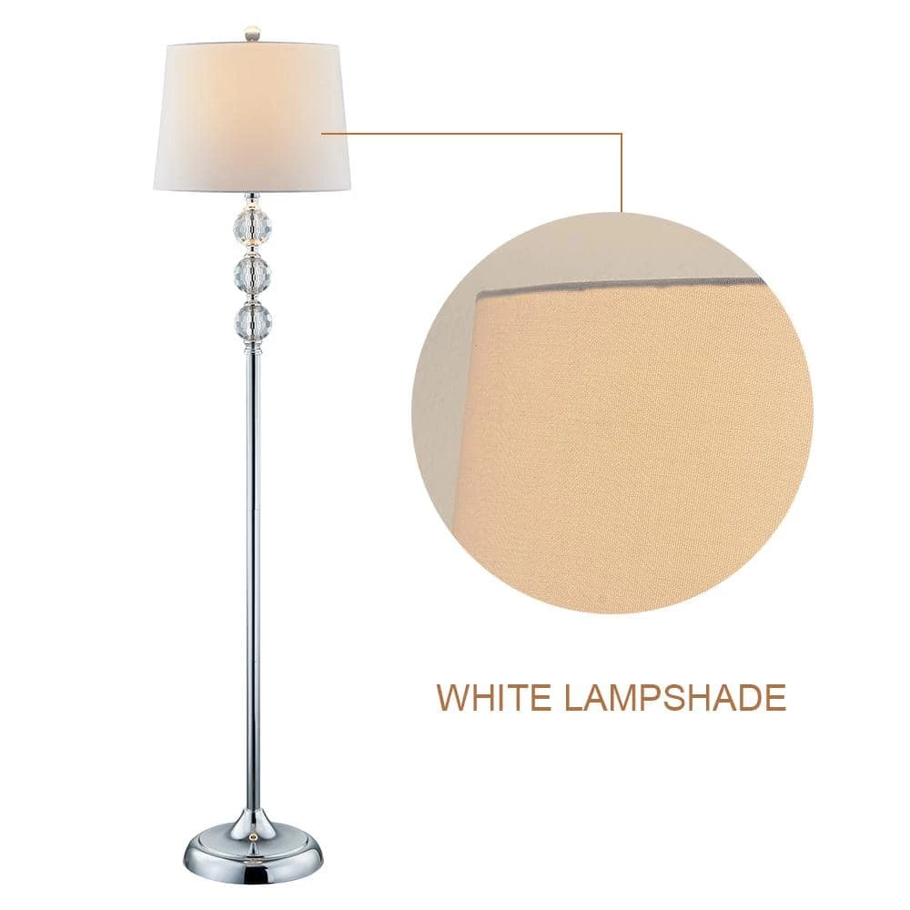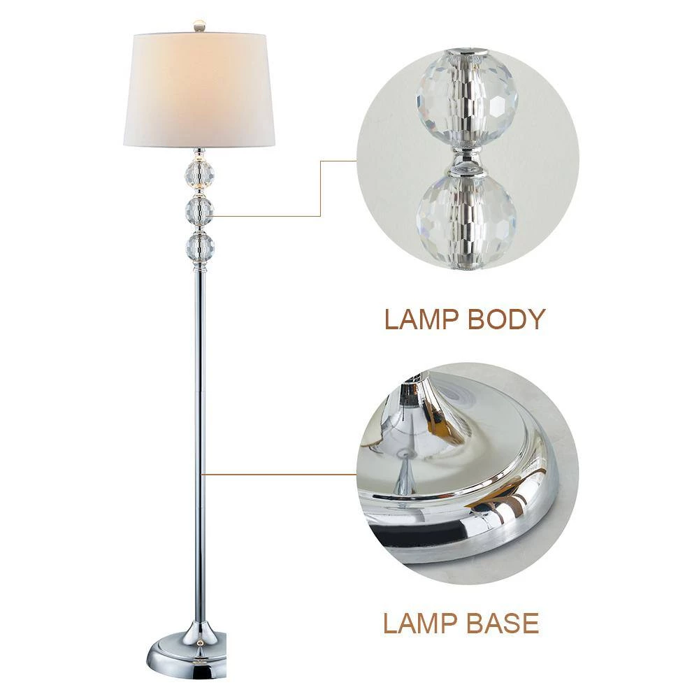 - Elegant traditional design: the modern floor lamp is constructed of high-quality solid metal and crystal material and white fabric linen cloth, the chrome finish on the stem and base are perfectly together with the warm tone of the lamp’s illuminated, textural hanging lamp shade, creating a comfortable environment to read, to work, to rest