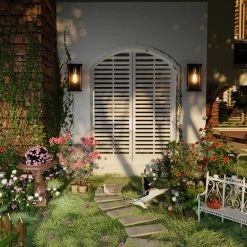 Topeka Ancient Red 12.6” H Hardwired Hammered Glass Outdoor Wall Lantern Sconce (Set of 2) by Maxax