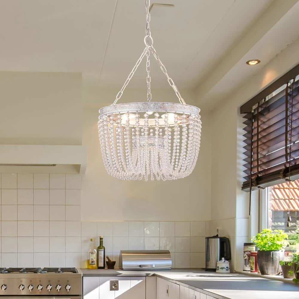 - Adjustable: adjustable length of chain suspends the whole chandelier from a sloped ceiling-compatible canopy above