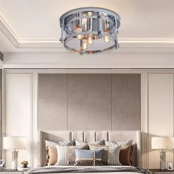 Raleigh 4-Light 16.8 in. Chrome Unique/Statement Drum Flush Mount With Glass Shade by Maxax