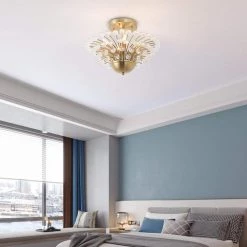 Portland 4-Light Gold 17.3 in. Semi Flush Mount With Crystal by Maxax