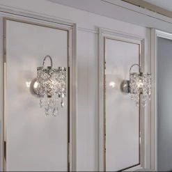 Indianapolis 1 – Light Chrome Wall Lamp Sconce with Crystal Pendant (Set of 2) by Maxax