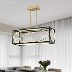 Boston 5 – Light Kitchen Black/Gold Island Square/Rectangle Integrated LED Chandelier by Maxax