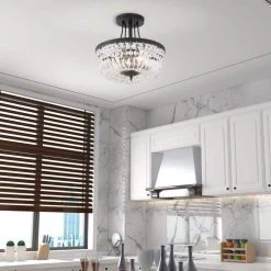Portland 11.8 in. 3-Light Black Simple Bowl Semi-Flush Mount With Crystal Shade by Maxax