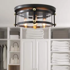 Raleigh 4 – Light 16.8 in. Black Drum Flush Mount With Glass Shade by Maxax