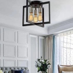 Santa Fe 3-Light 14.57 in. Black Unique/Statement Square/Rectangle Flush Mount by Maxax