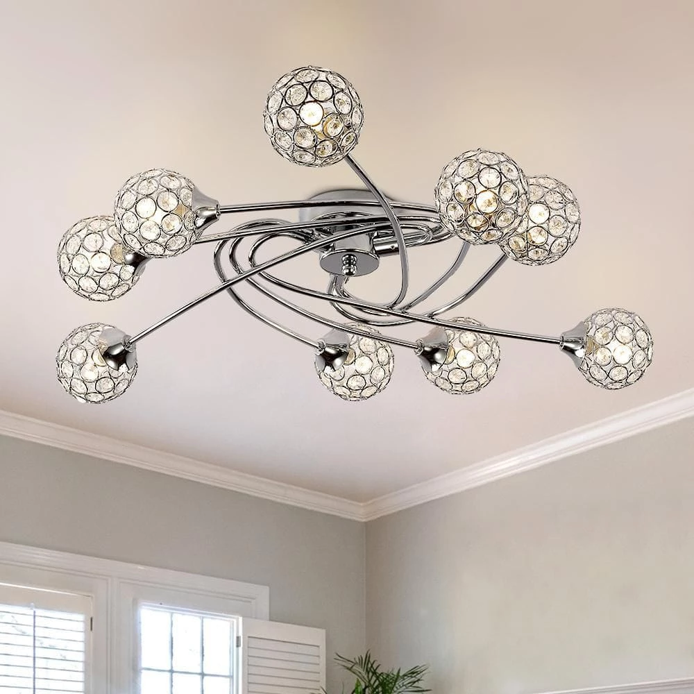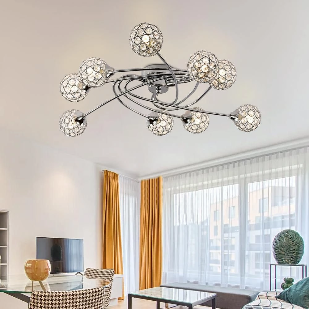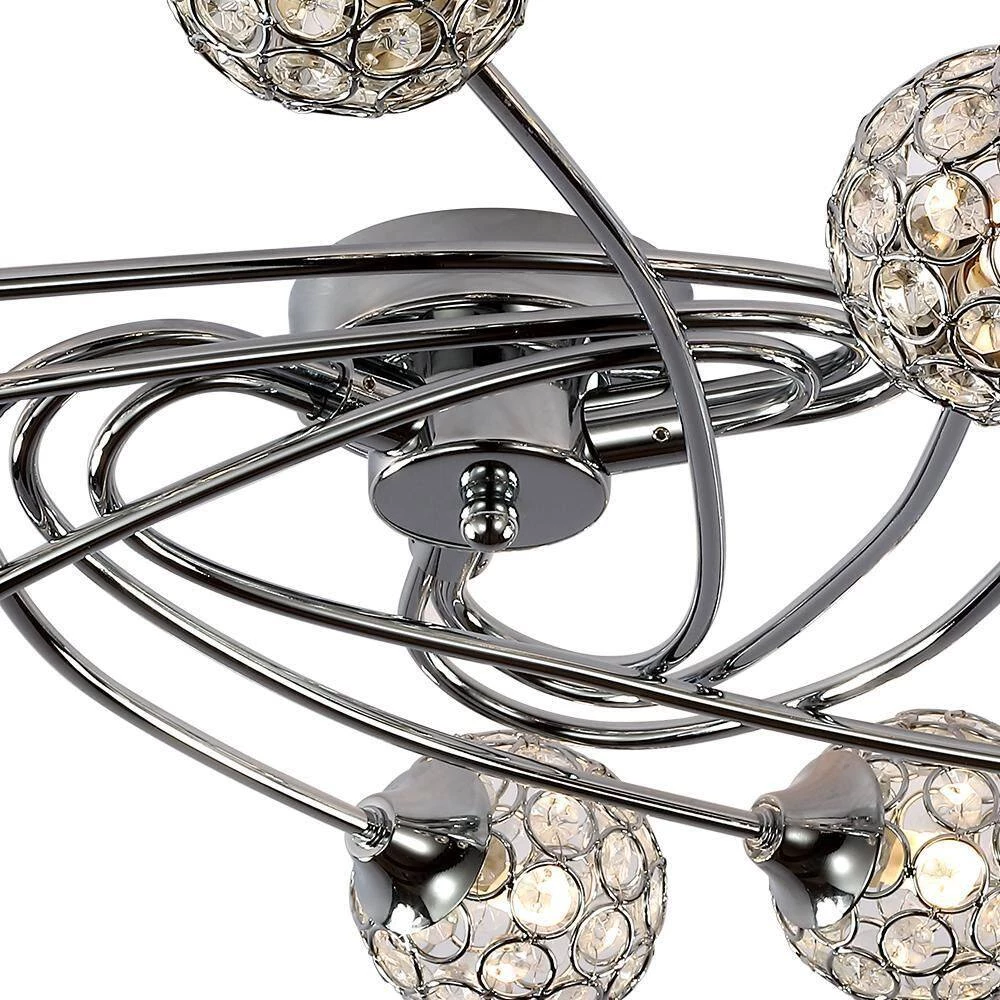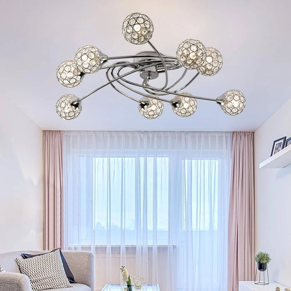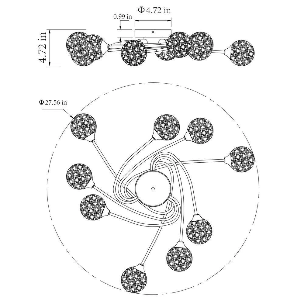 This 9-Light 27.56 in. Flush Mount takes the classic sputnik design and adds a bold modern twist to create an eye-catching accent. It’s made from metal and features 9 curving arms that wrap around the canopy to create a cyclone silhouette. At the end of each arm are faceted glass globe shades that refract the light from the 60-Watt bulbs (not included) throughout your space. This fixture is compatible with a dimmer switch to effortlessly take you from day tonight.