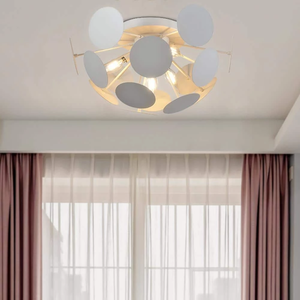 The 4-light semi flush mount ceiling light fixture adopts a striking sputnik-inspired silhouette brings mid-century modern style to your home. This sputnik chandelier light fixture is suitable for small room or low ceiling. it’s the perfect light fixture to install in the bedroom, living room, dining room, kitchen, foyers, hallway, entryway, coffee bar, lobby, restaurant, basement and any space you like.