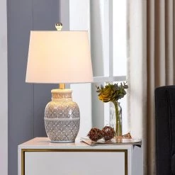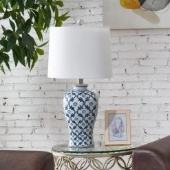 Sacramento 25 in. Blue/White Ceramic Table Lamp, Traditional Chinoiserie Bedside Lamp by Maxax