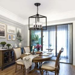 Springfield 4-Light Black Lantern Square/Rectangle Chandelier with Wrought Iron Accents by Maxax