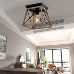 Springfield 1 – Light 9.05” Black/Wood Unique/Statement Square/Rectangle Flush Mount by Maxax