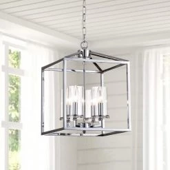 Springfield 4-Light Chrome Lantern Square/Rectangle Chandelier with Wrought Iron Accents by Maxax