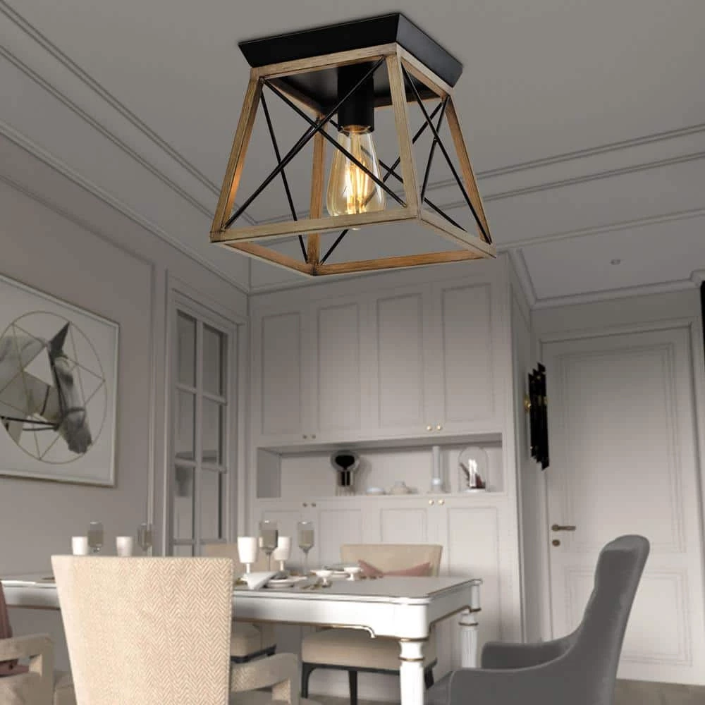 Create a warm and comfortable home atmosphere with a classic barn-like feel. The open cage lamp uses a wood-like frame and coastal-style finishes. The farmhouse-style design of the ceiling lamp is very suitable for any corridor, kitchen, living room, or entrance hall in the retro interior.