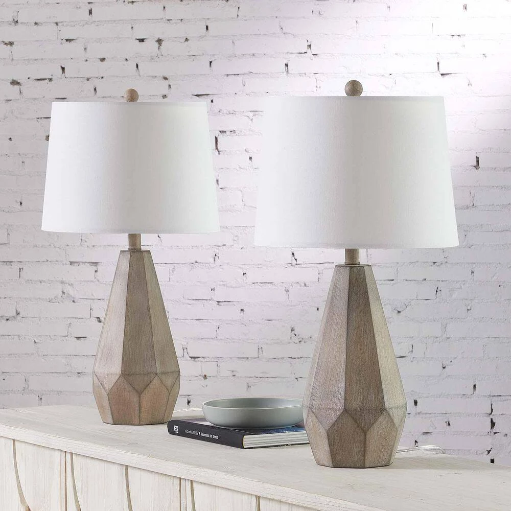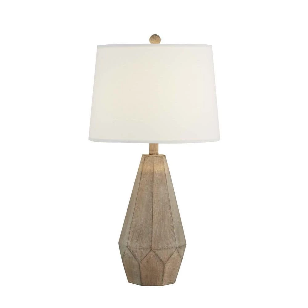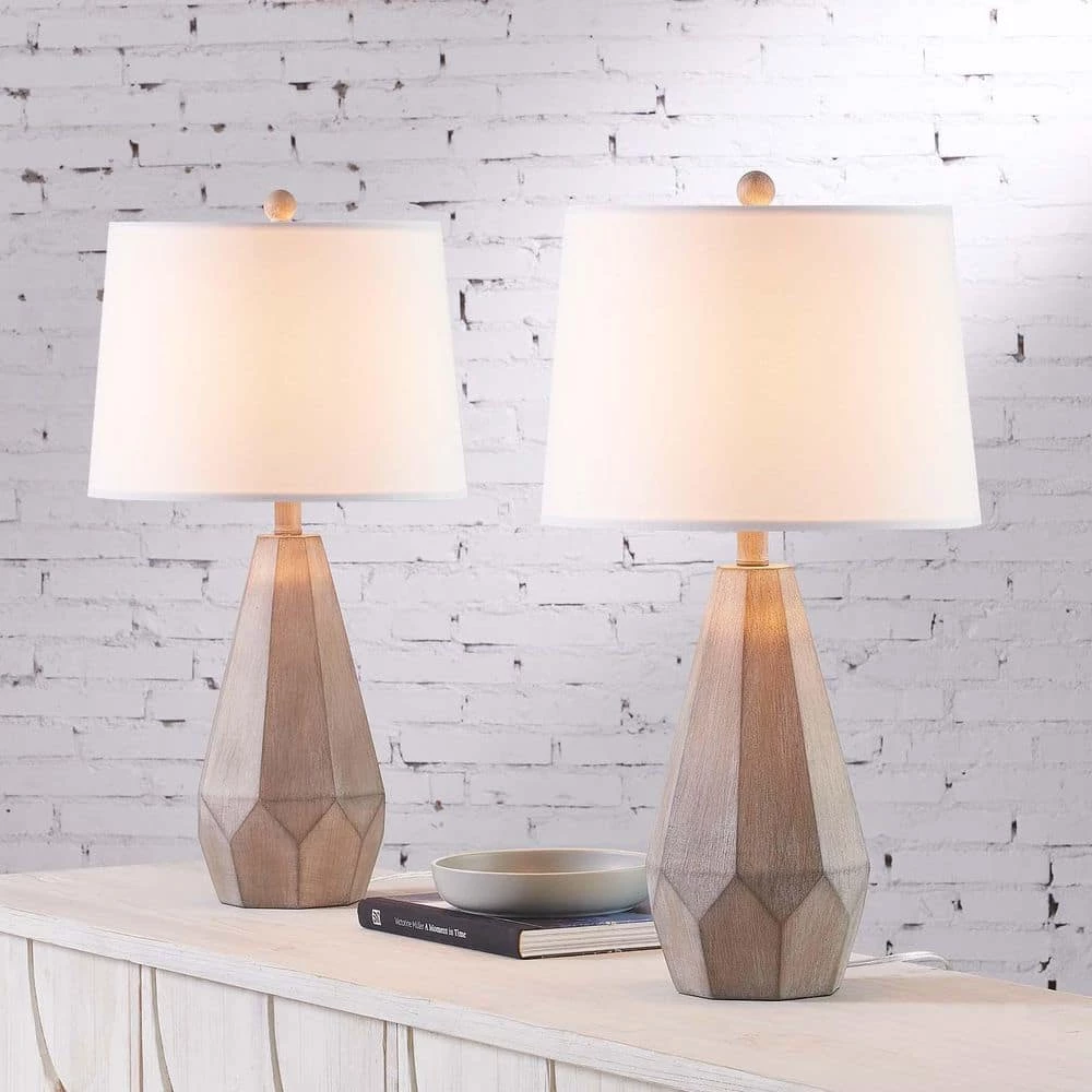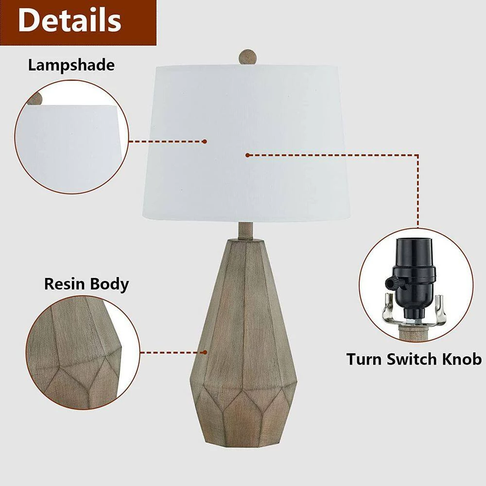 This country/farmhouse style table lamp is made of high-quality resin. Its surface treatment is wood grain color, very detailed. A white shade with an E26 base bulb inside (note the bulb is not included), perfect for your living room or bedroom.